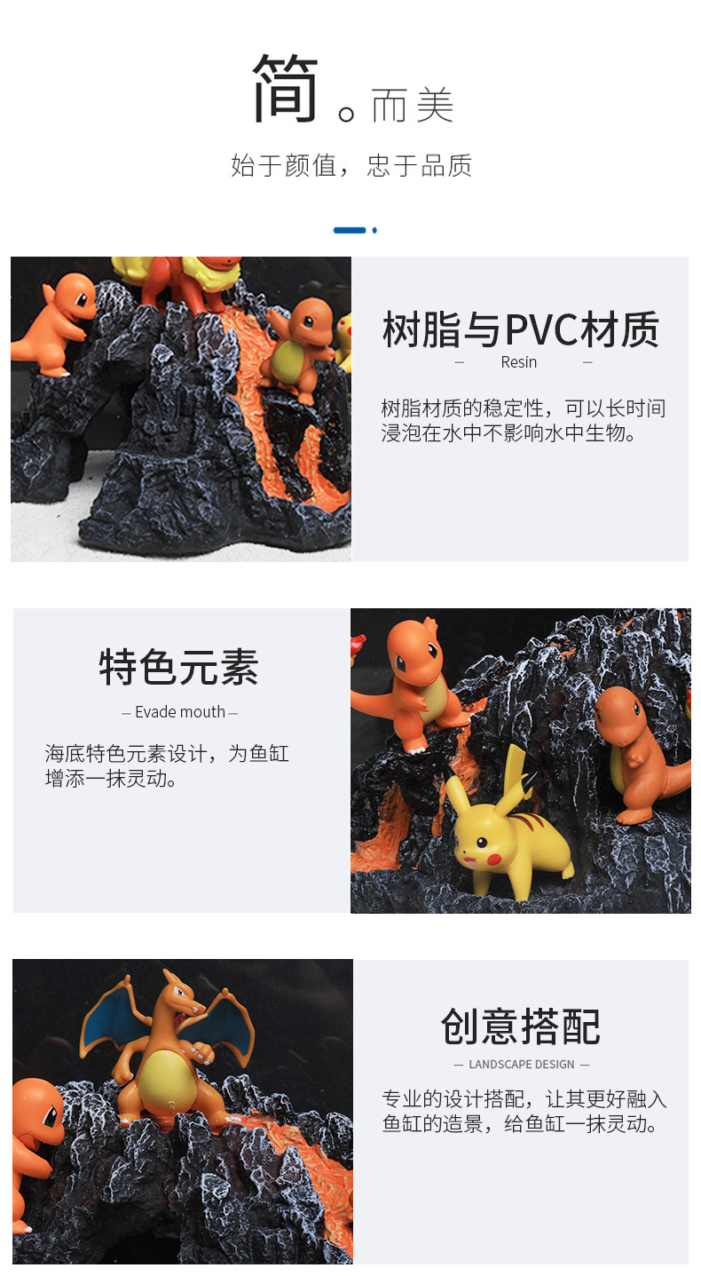 국경을 넘는 어항 피카츄 만화풍 장식 패키지, 미니어처 풍경 동화 장식품, 수초 어항 장식, 은신처
