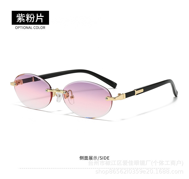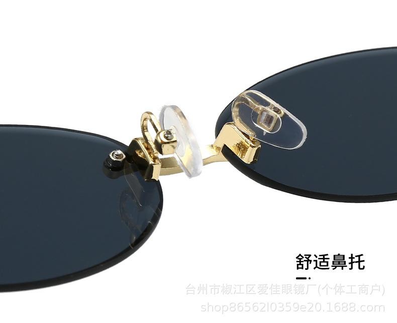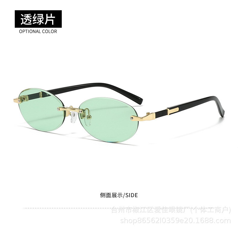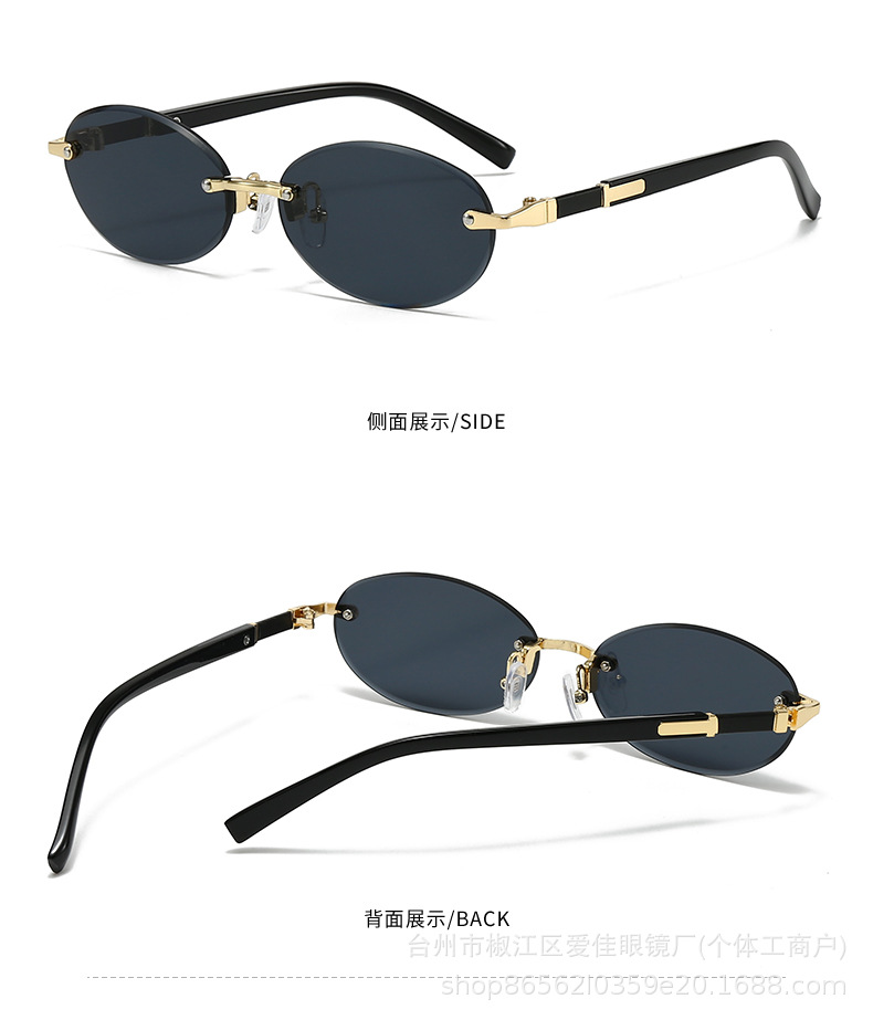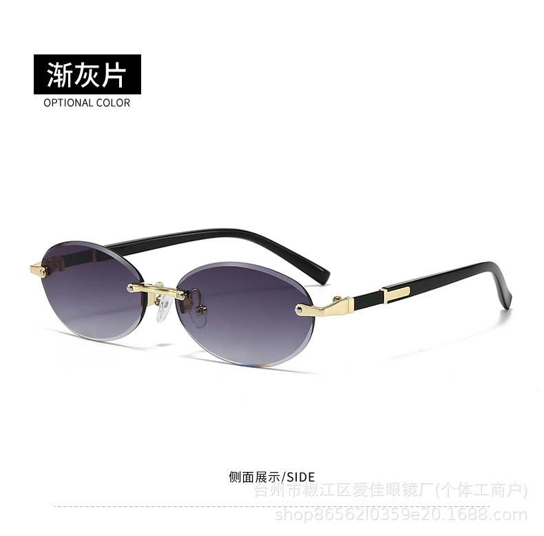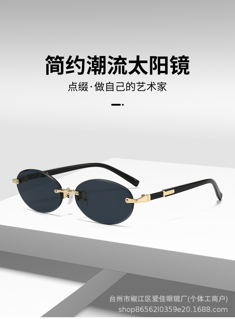 새로운 유럽과 미국의 트렌드 프레임리스 트리밍 타원형 선글라스 맞춤형 국경 안경 힙합 안경스토어 가기
