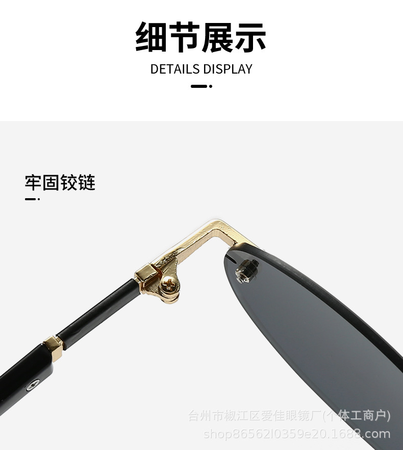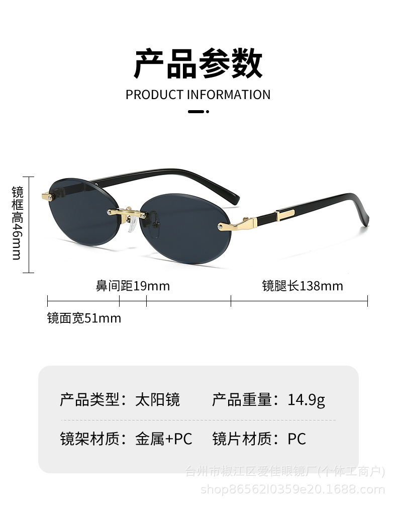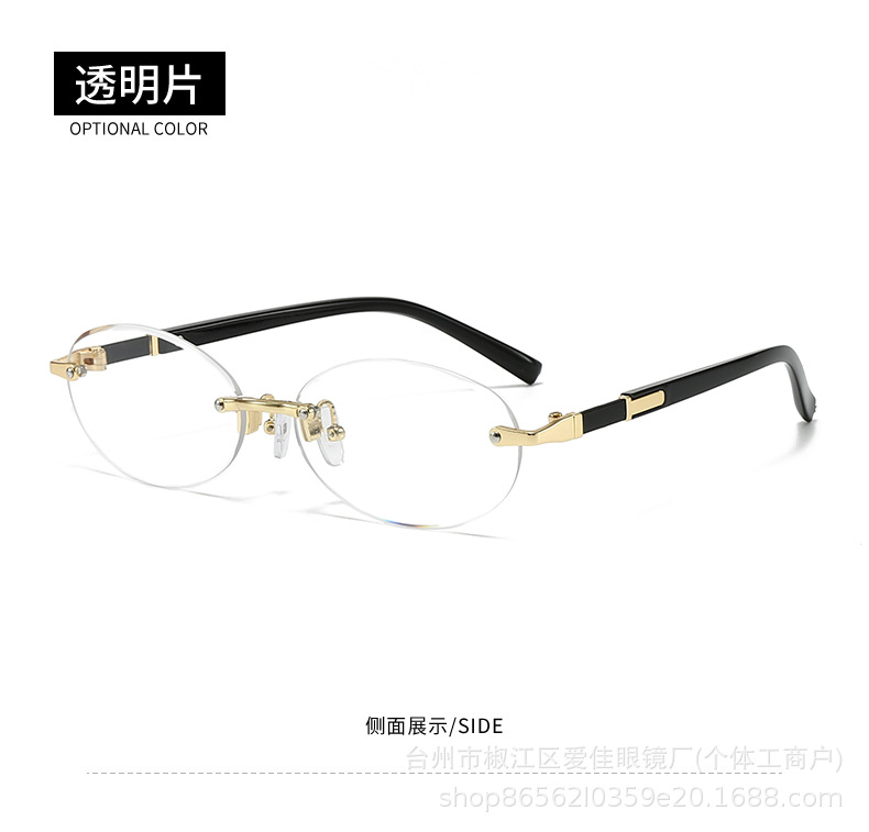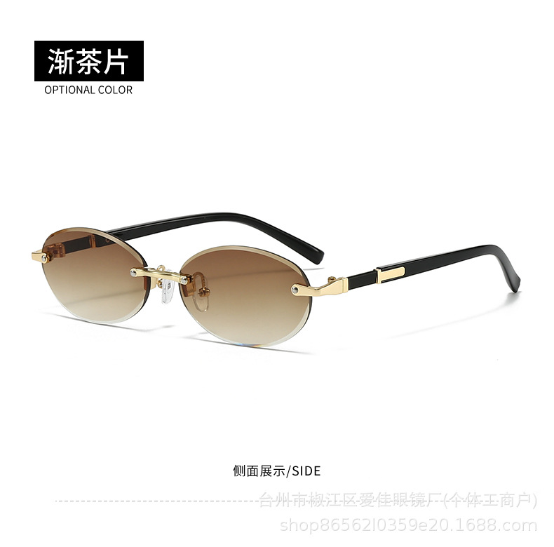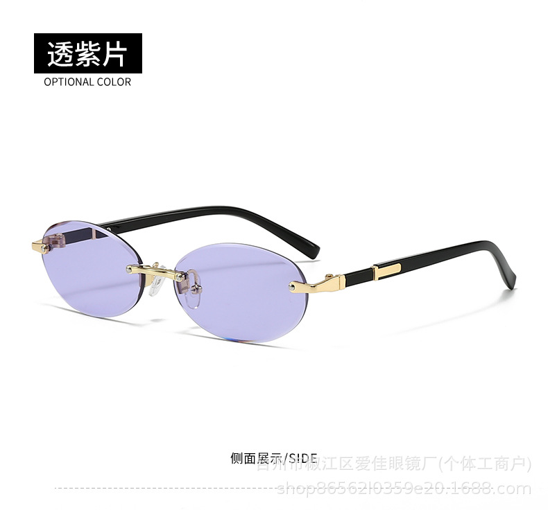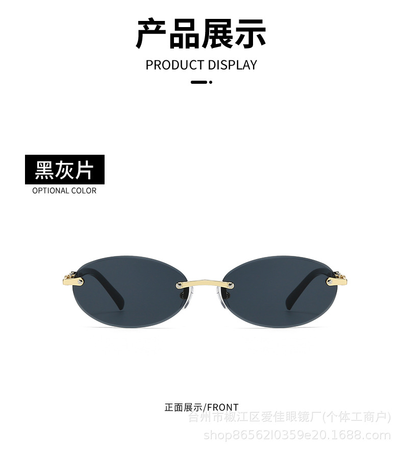 새로운 유럽과 미국의 트렌드 프레임리스 트리밍 타원형 선글라스 맞춤형 국경 안경 힙합 안경스토어 가기