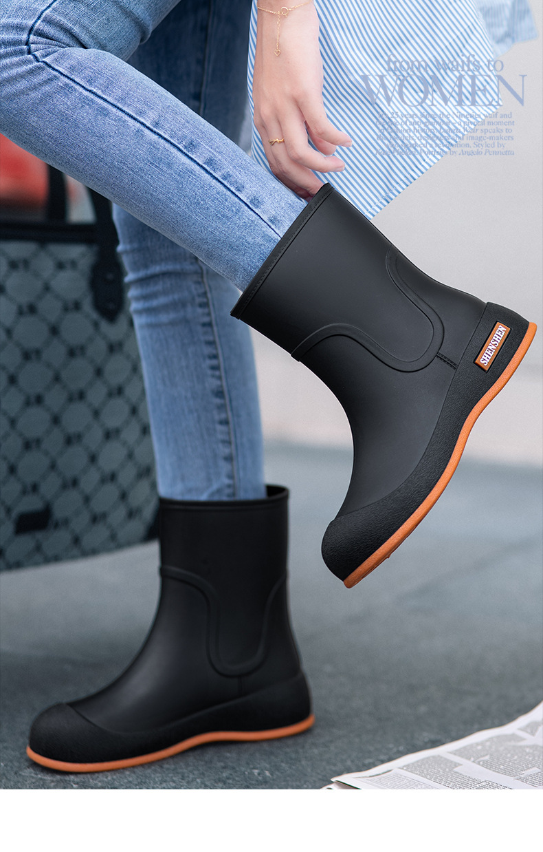 국경 간 패션 중간 배럴 장화 여성의 트렌디 한 야외 미끄럼 방지 방수 방수 방수 캠핑 장화 여성 신발 기모스토어 가기