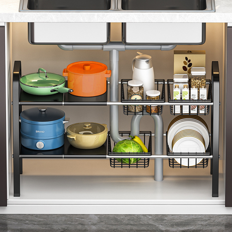 주방 확장 가능한 싱크 스토리지 랙 캐비닛 포트 랙 스토리지 라미네이트 랙 세척 분지 스토리지 랙