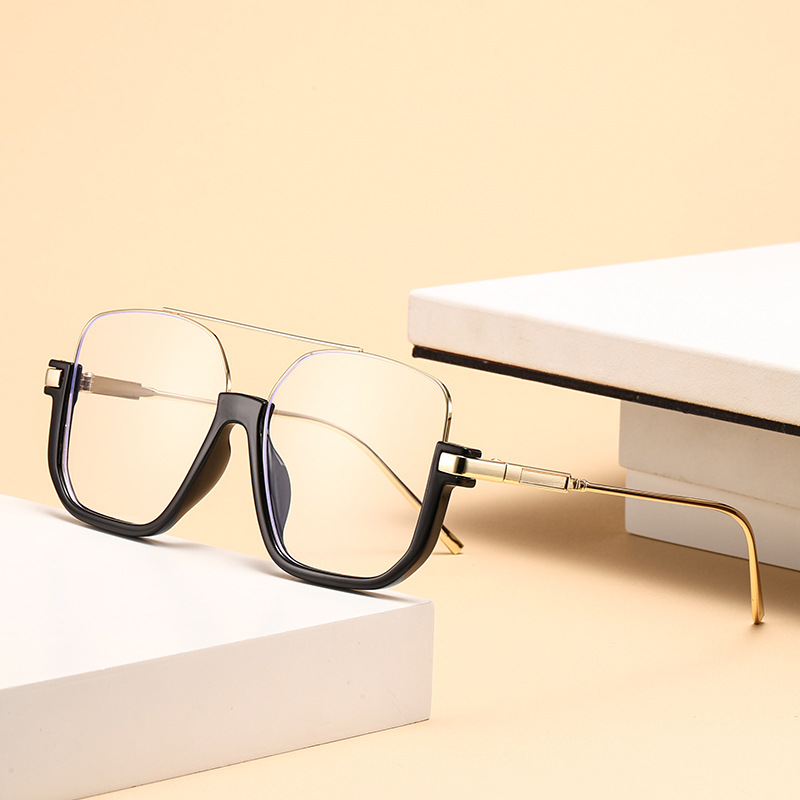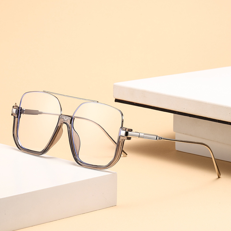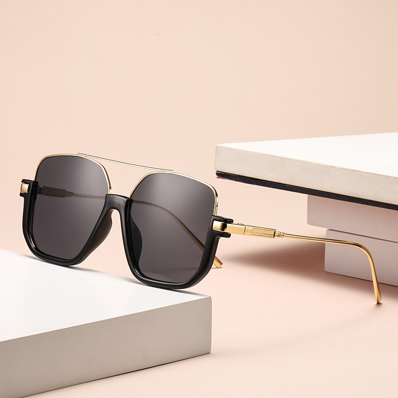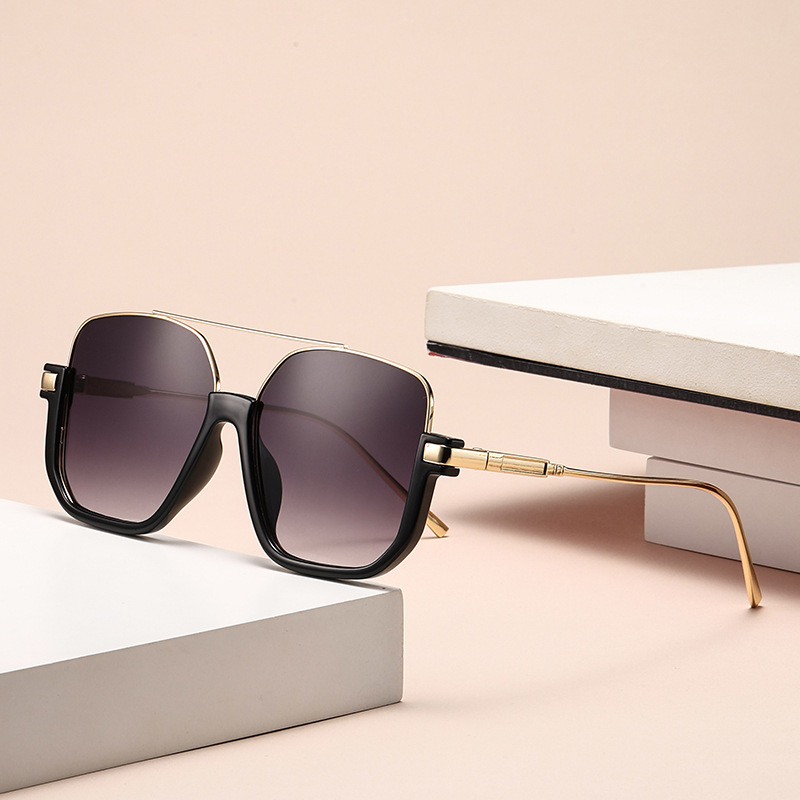 고급 선글라스 다크 브라운 새로운 고급 유니섹스 투명 더블 빔 레트로 블랙 대형 프레임 안경 선글라스