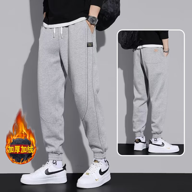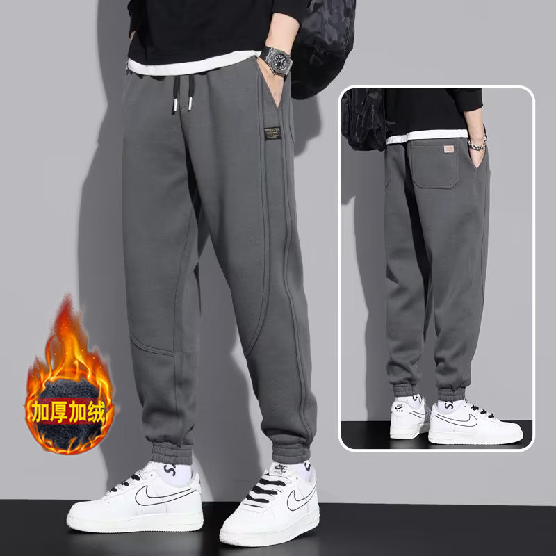 무거운 캐주얼 땀 바지 남자의 봄과 가을 저렴한 내구성 기모 두꺼운 가을 느슨한 다리 스포츠 긴 바지