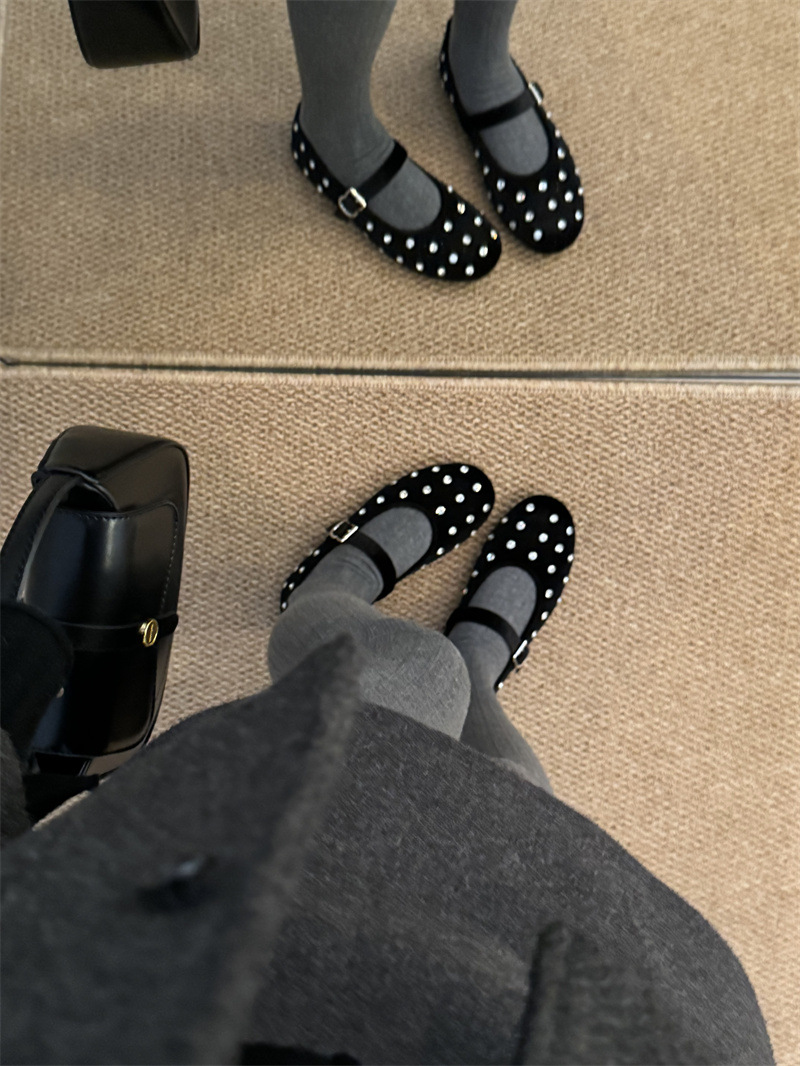 2025 봄과 여름 새로운 광장 머리 리벳 라인스톤 플랫 바닥 가죽 발레 신발 메리 신발 여성스토어 가기
