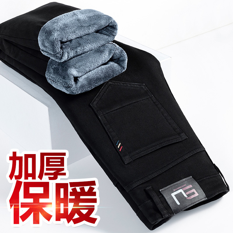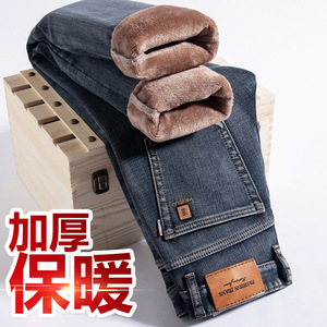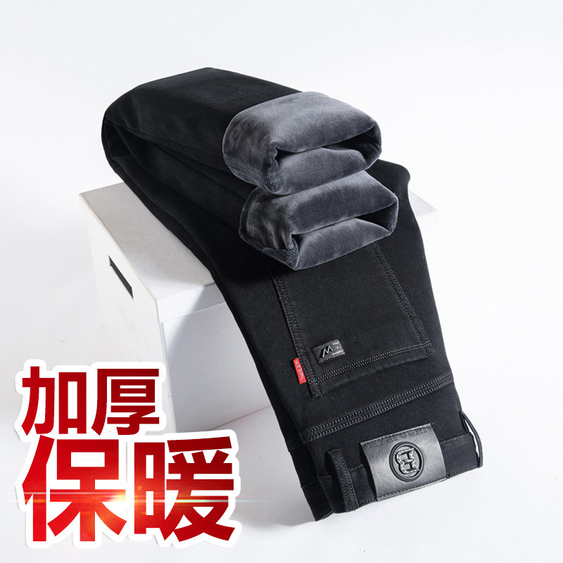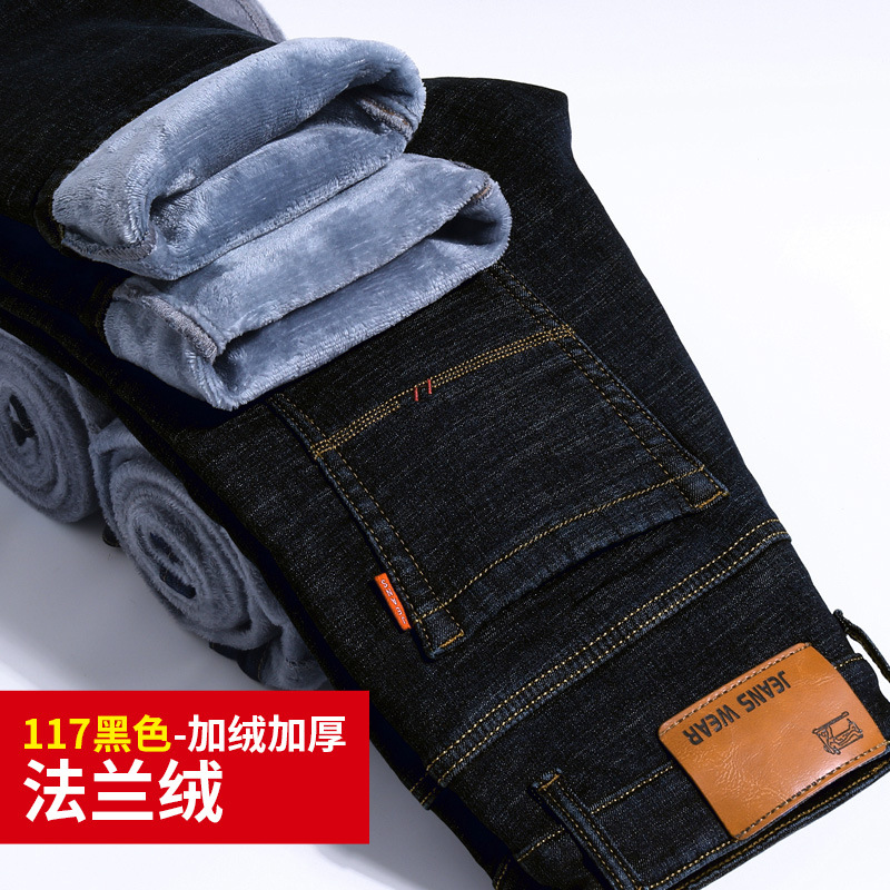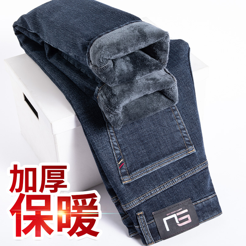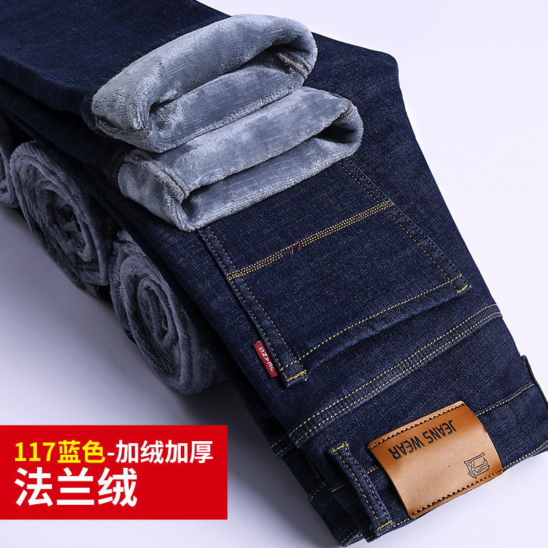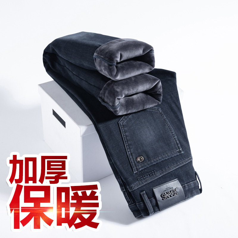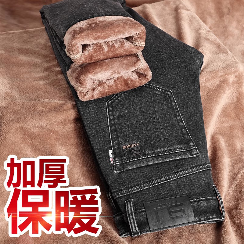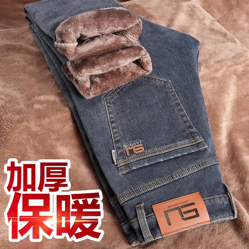남성용 겨울 기모 데님 팬츠, 두꺼운 보온 스트레이트 핏, 2025년 신상 겨울 캐주얼 남성용 긴 바지스토어 가기