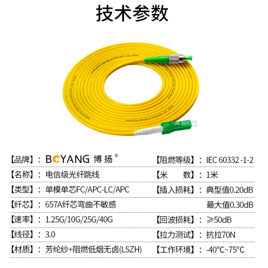 博扬(BOYANG)电信级网线光纤跳线尾纤 1米LC/APC-FC/APC单模单芯 广电专用光纤线 BY-1871SM