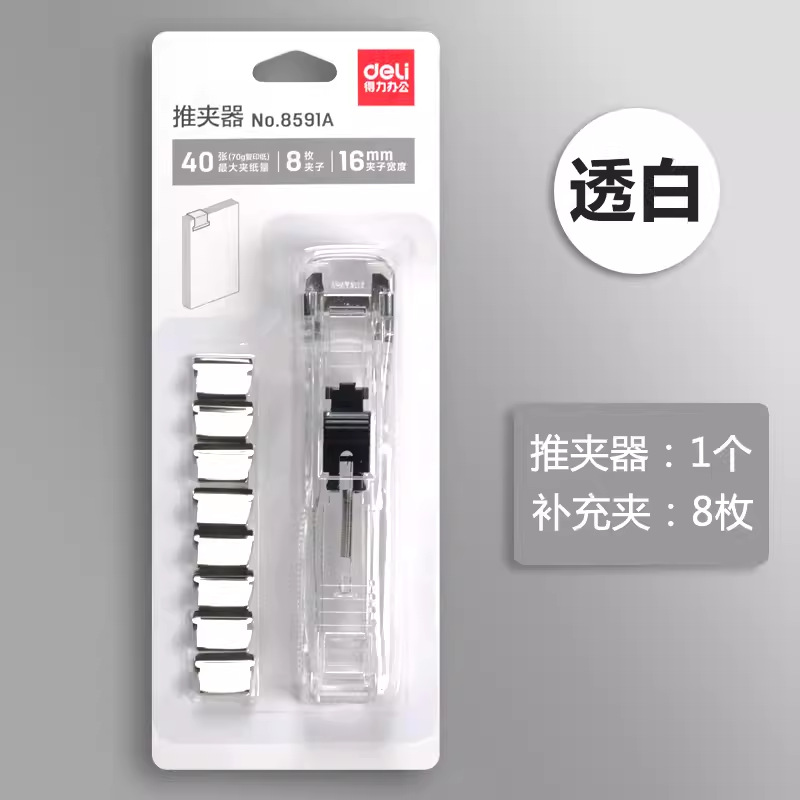 • 8591A 투명 흰색 [클립 푸셔 1개 + 클립 8개]