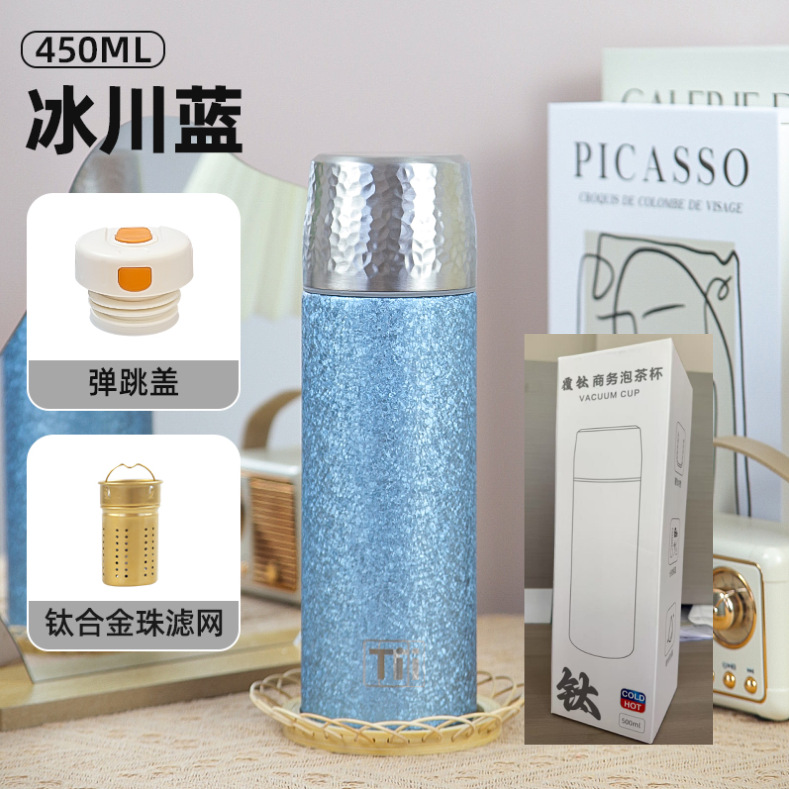 고급스러운 티타늄 코팅 이중 단열 컵, 휴대용 망치 무늬 진공 버블 스튜 티컵, 가벼운 럭셔리 고급 비즈니스 선물 컵
