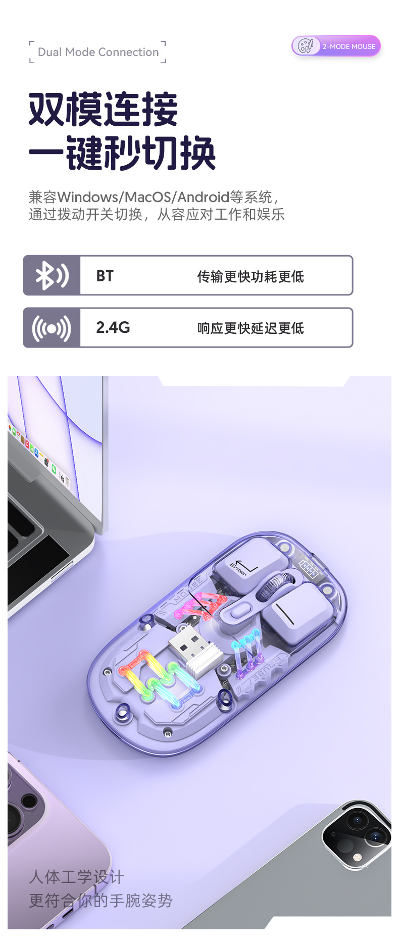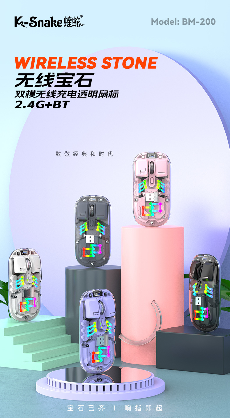 Viper BM200 듀얼 모드 마우스 RGB 발광 2.4G 무선 블루투스 투명 게임 e-스포츠 컴퓨터 오피스 마우스스토어 가기