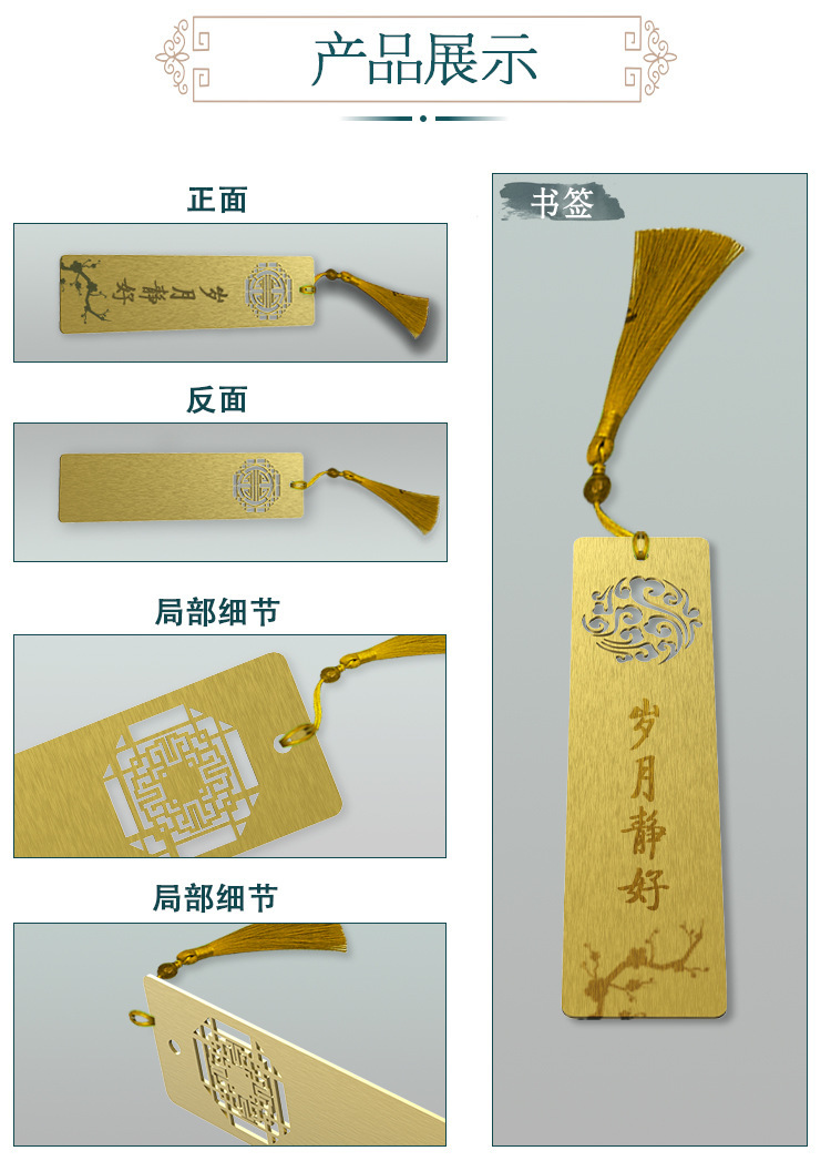 고전적인 Guofeng 황동 금속 북마크 하이 엔드 절묘한 중학교 학생 절묘한 간단한 창조적 인 작은 선물 기념품스토어 가기