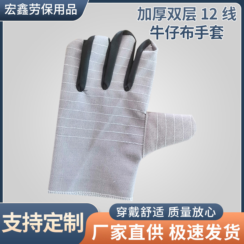 이중 층 12 라인 데님 두꺼운 노동 보호 장갑 이중층 내마모성 노동 보호 확대 장갑 건설 현장스토어 가기