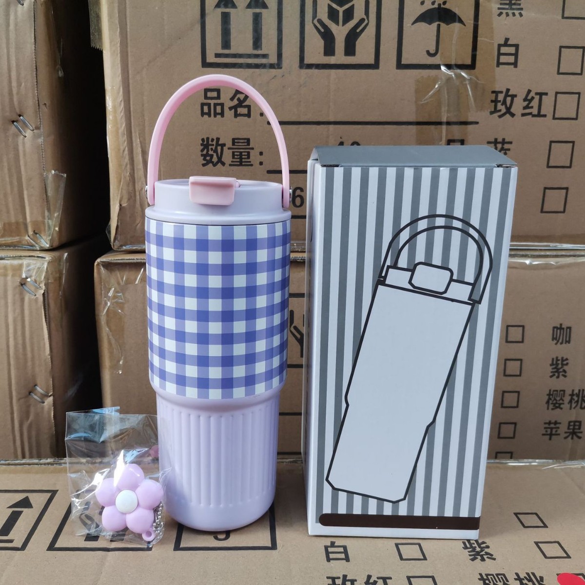 • 750ML 보라색 격자 무늬 (꽃잎 포함)