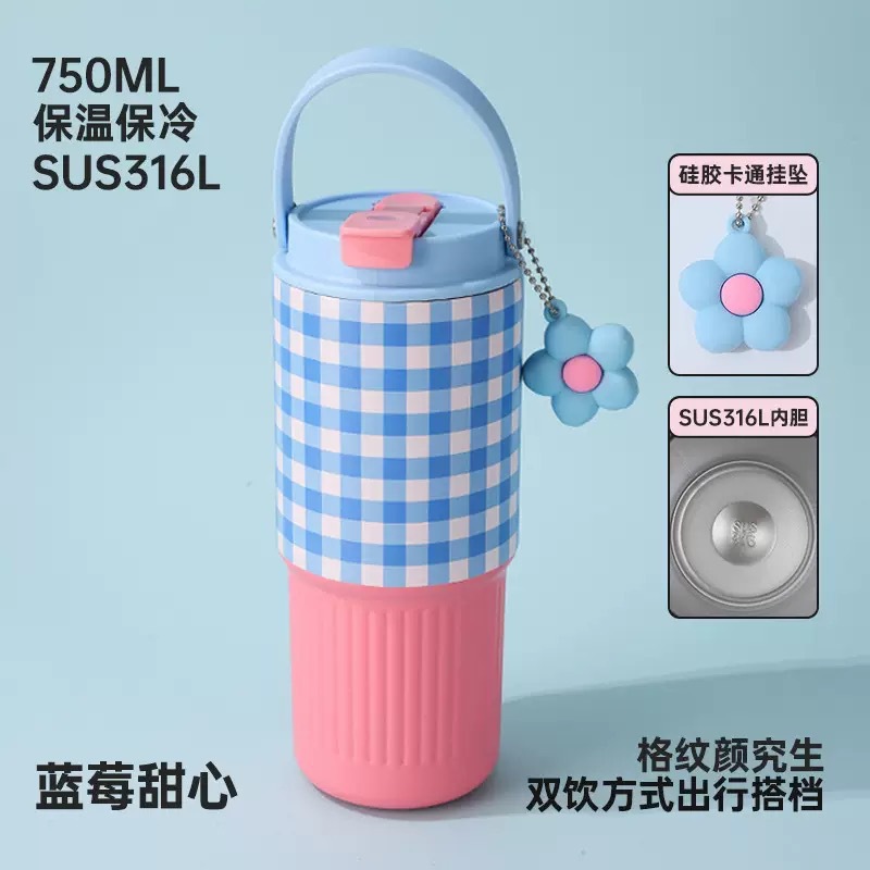 국경 간 휴대용 아이스 컵 316 스테인레스 스틸 보온병 컵 대용량 자동차 컵 높은 색상 750ml 물 컵스토어 가기