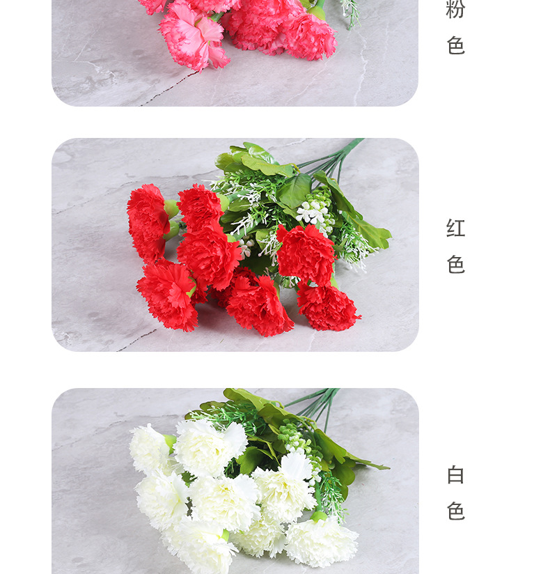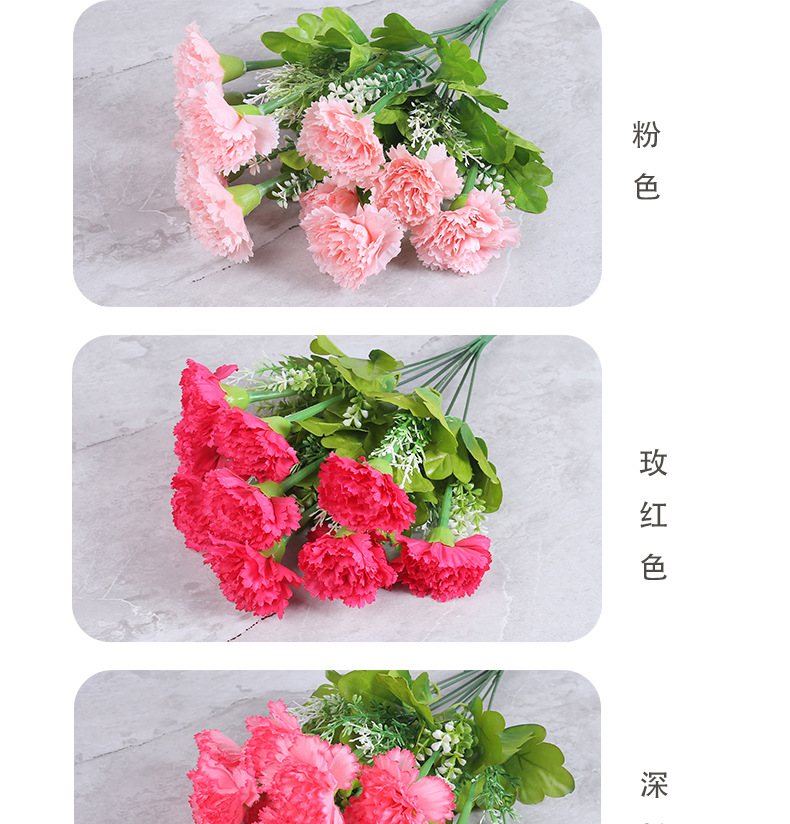 식물 벽 홈 창 야외 장식 소품에 적합한 10 헤드 카네이션 인공 인공 인공 인공 인공 꽃스토어 가기