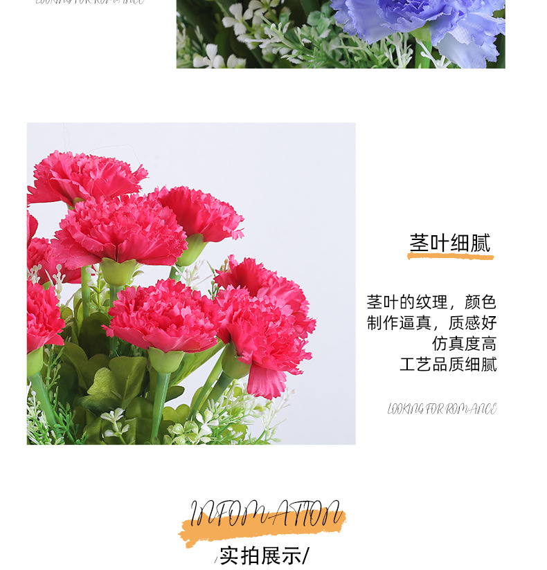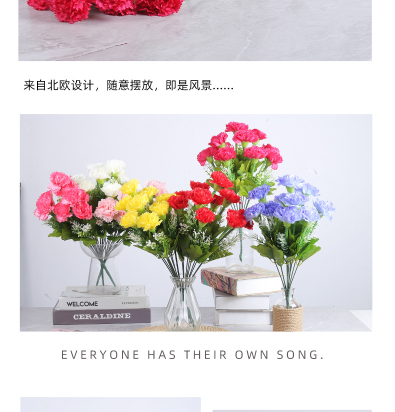 식물 벽 홈 창 야외 장식 소품에 적합한 10 헤드 카네이션 인공 인공 인공 인공 인공 꽃