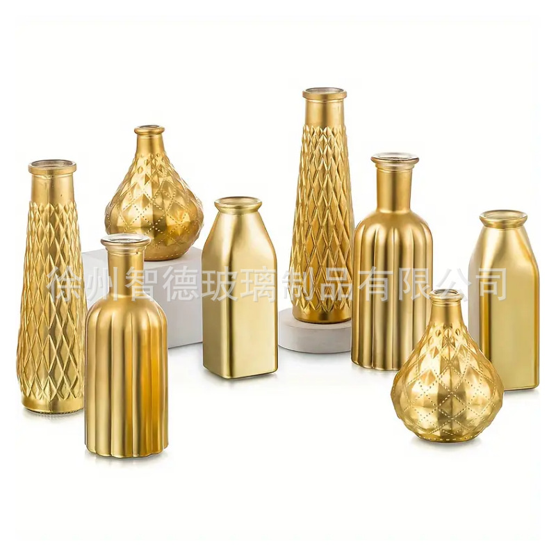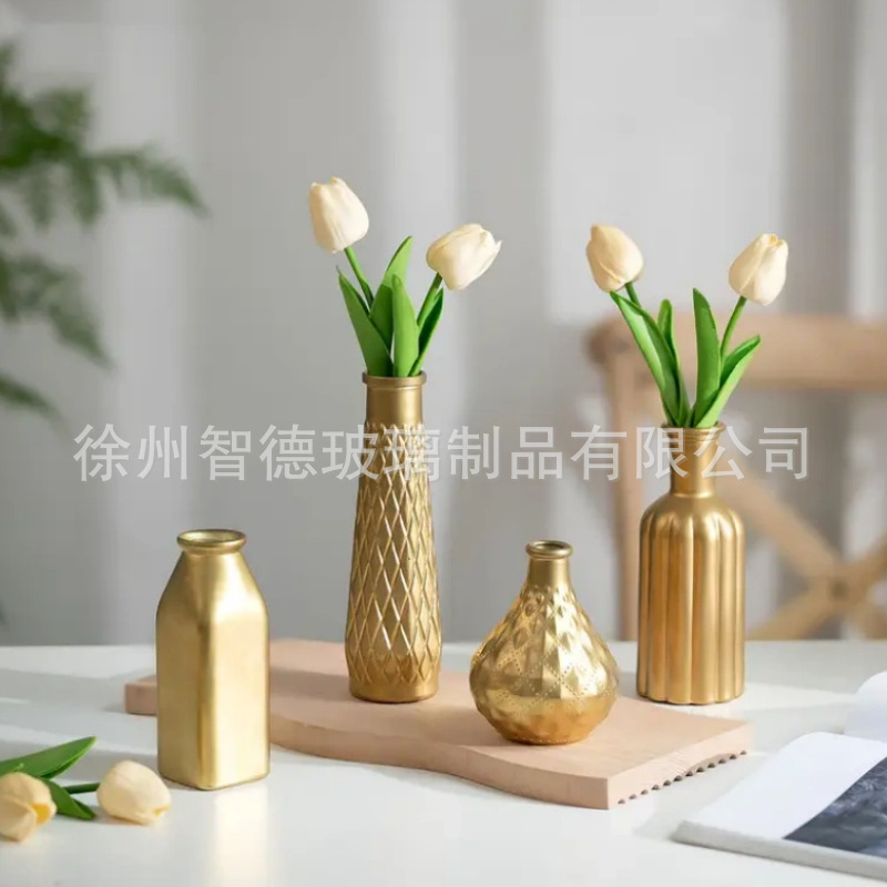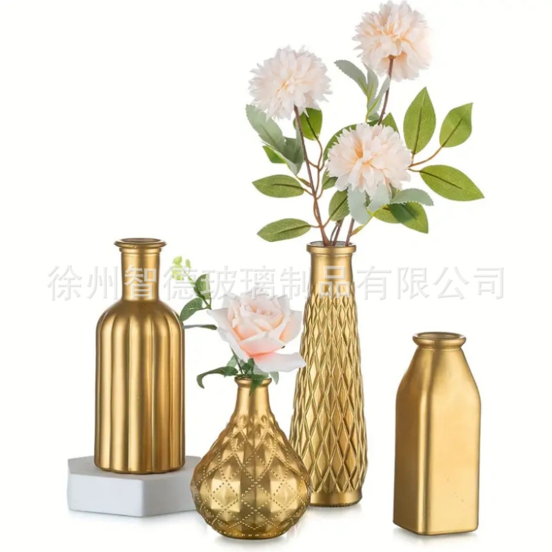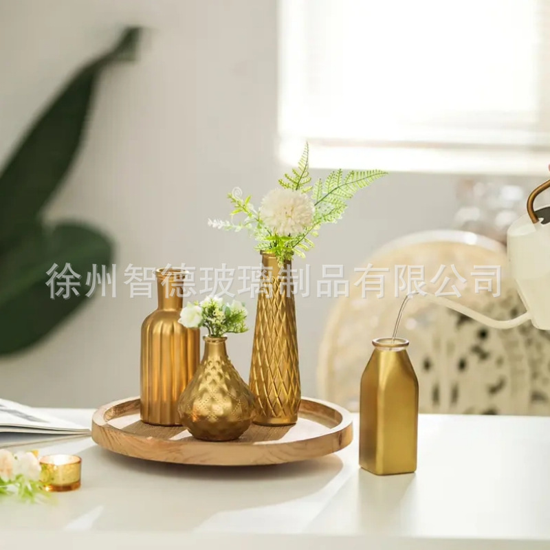 아마존 폭발 황금 중간 고대 꽃병 높은 수준의 간단한 꽃 꽃 꽃 배열 유리 꽃병 식탁 장식 장식품