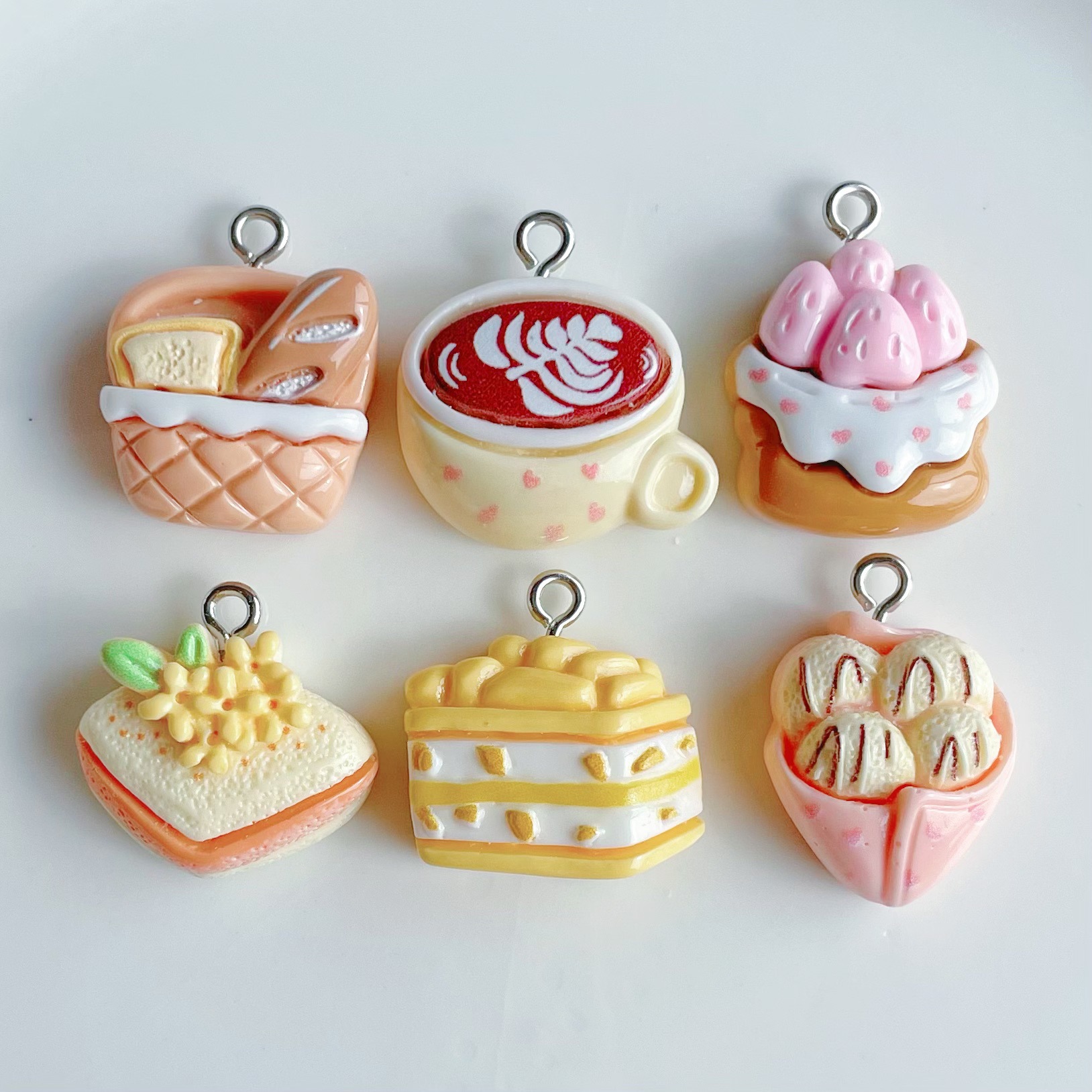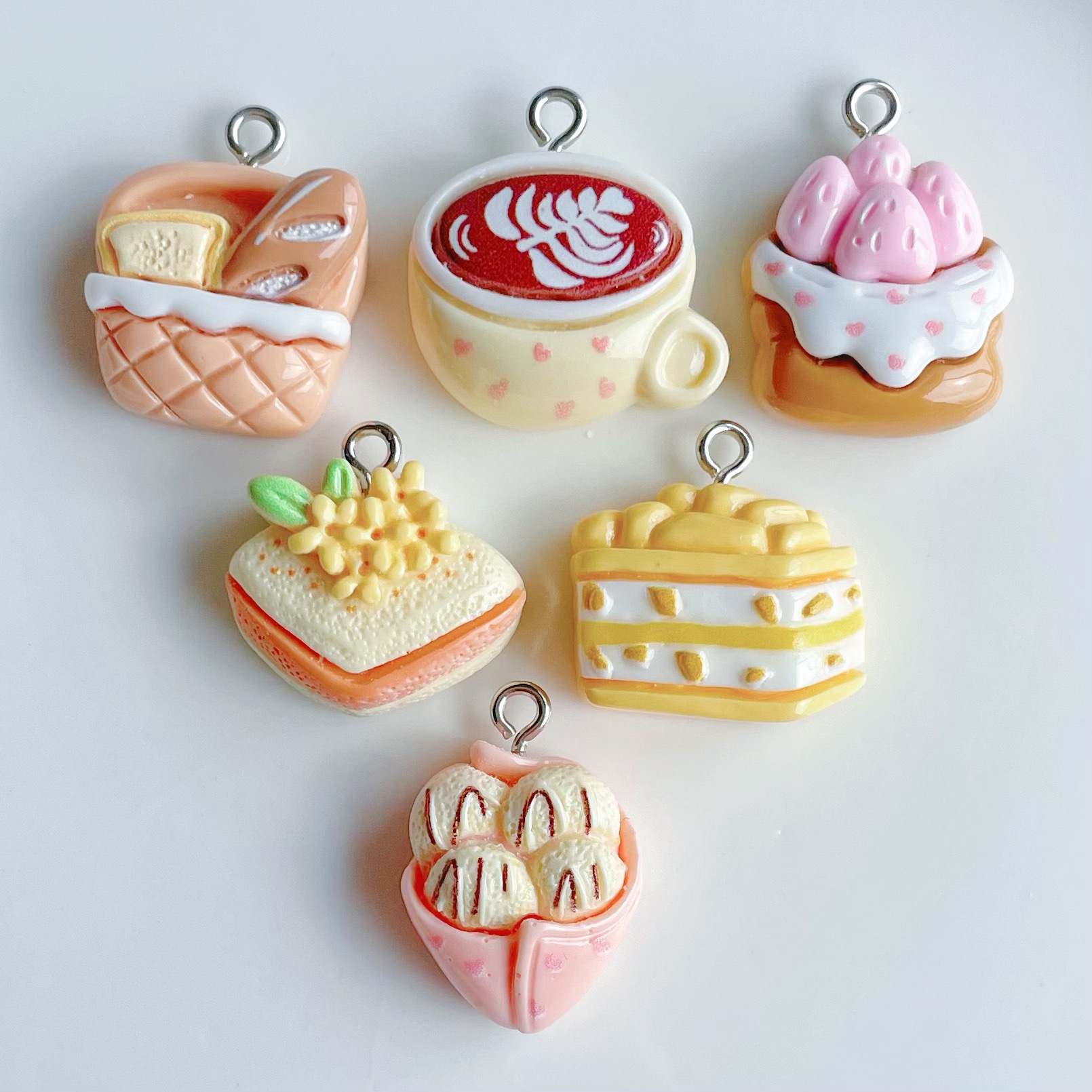 모조 음식 놀이 빵 커피 아이스크림 케이크 수지 DIY 보석 펜던트 펜던트 키 체인 장식
