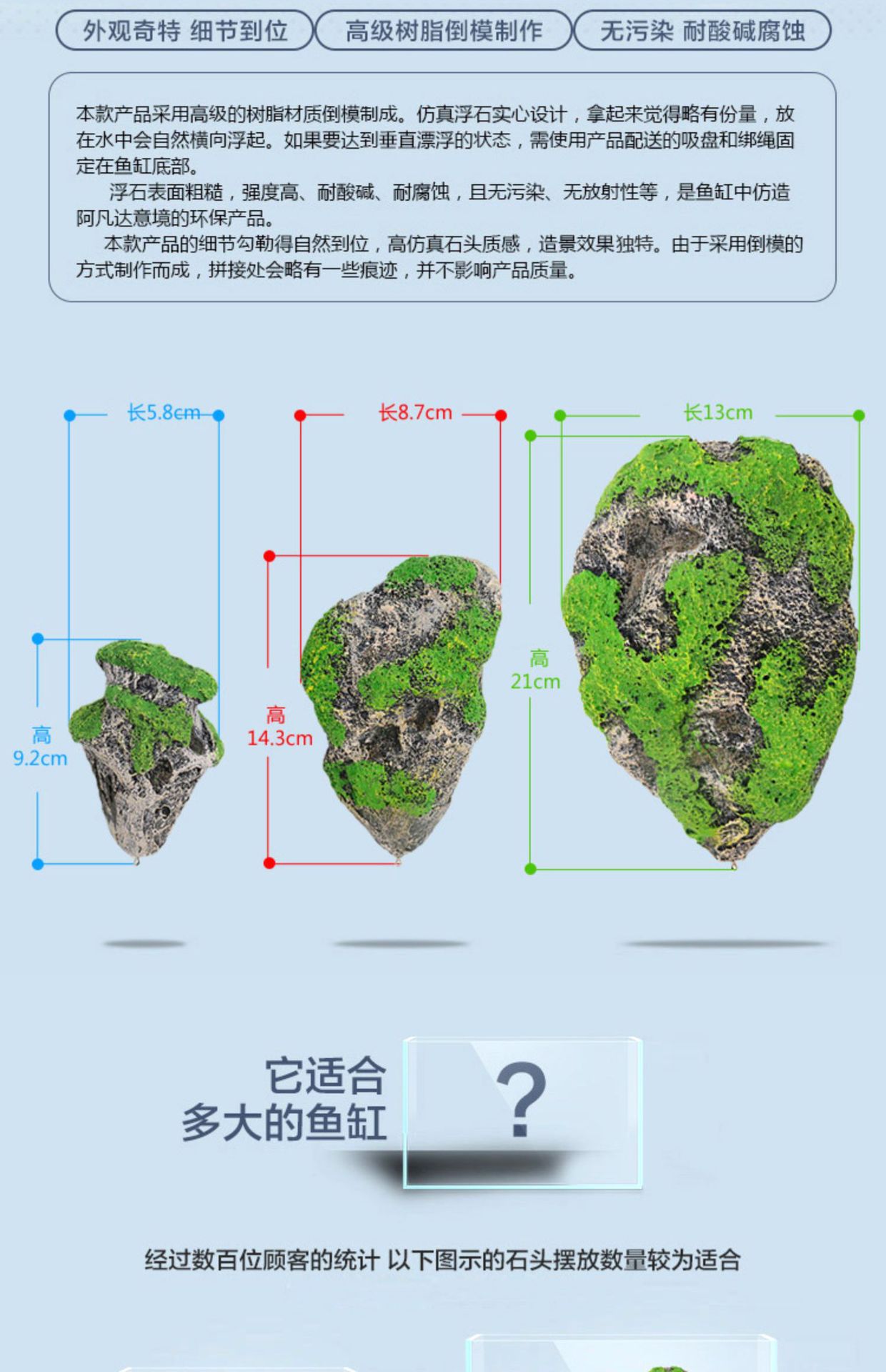 국경을 넘는 플로팅 스톤 수족관 인공 조경 장식 플로팅 스톤 아바타 수초 어항 조경석 모스 스톤