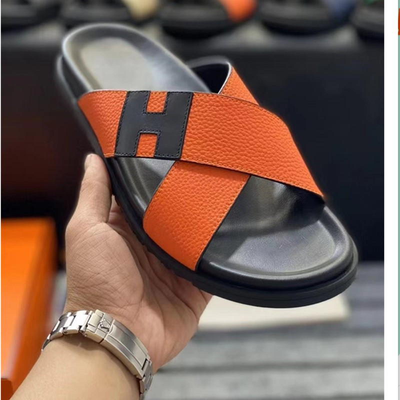 유럽 역 남성 신발 가죽 캐주얼 슬리퍼 새로운 미끄럼 방지 비치 신발 샌들 통기성 편안한 외부 착용 남성 신발