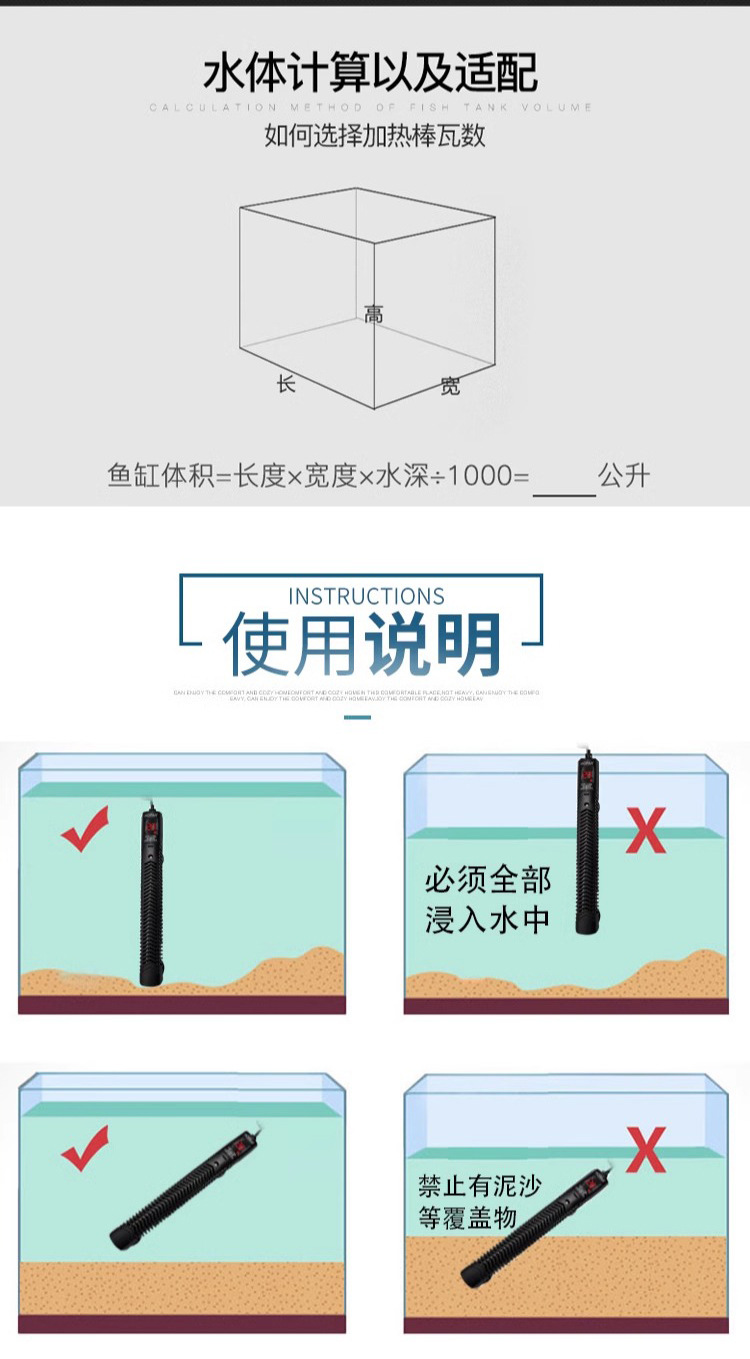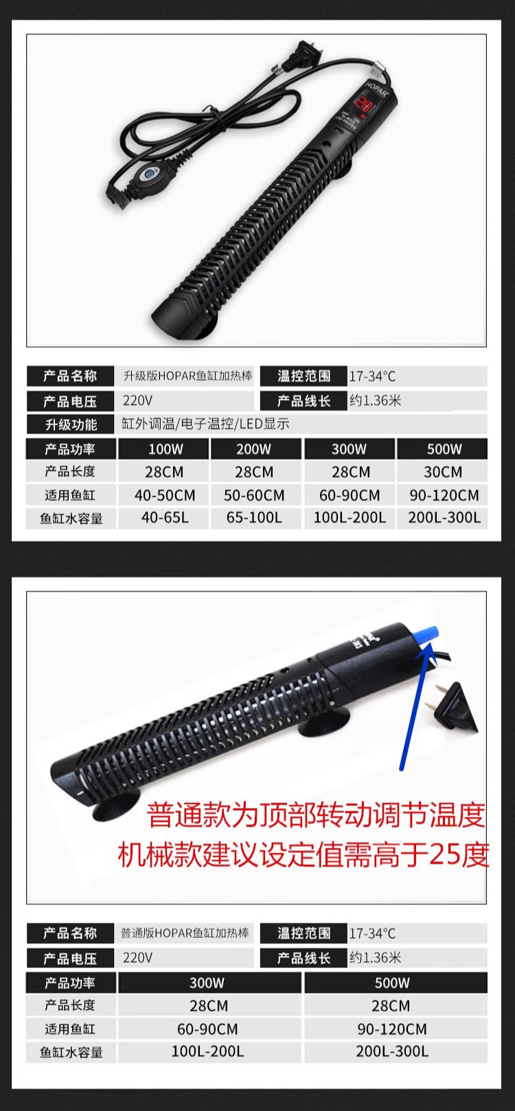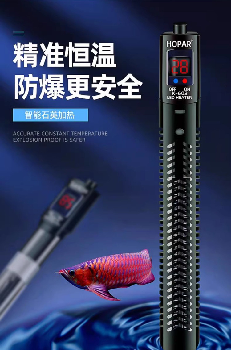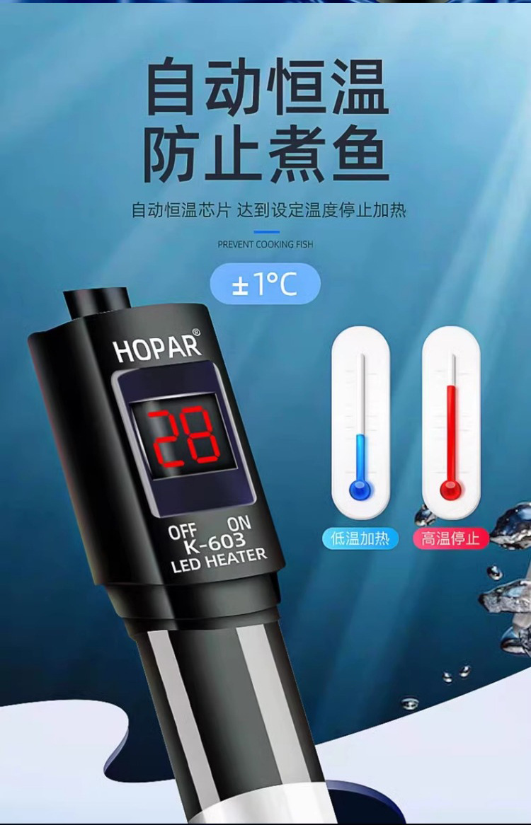 하이바 울트라 짧은 일정한 열봉 하단 필터 업그레이드 버전 K-603 전자 온도 제어 디지털 디스플레이 어항 지능형 폭발 방지 가열 막대
