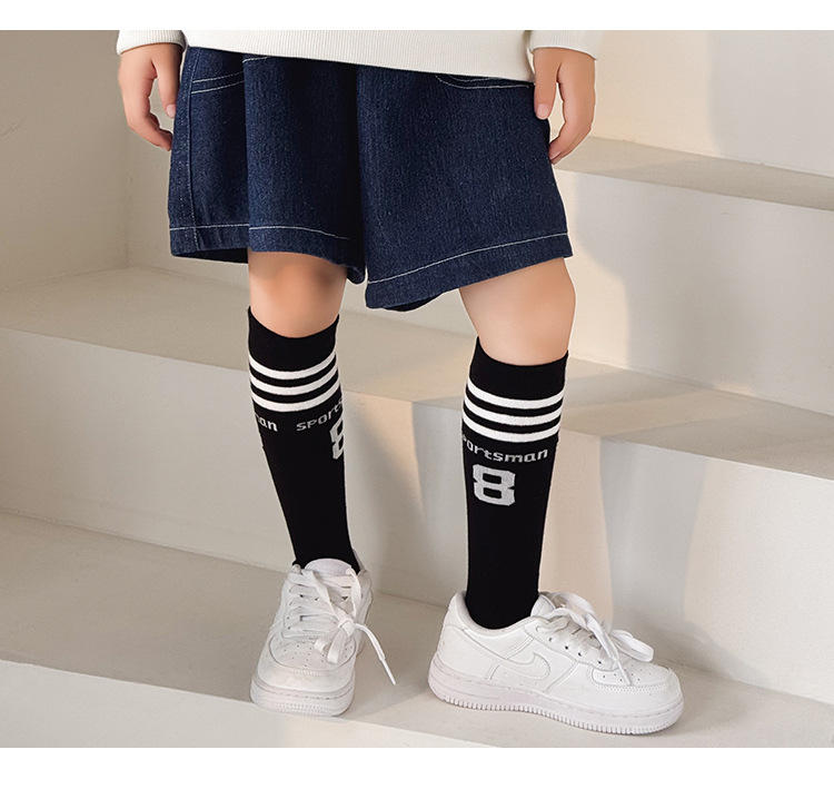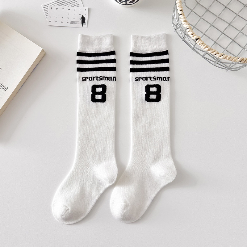 어린이 양말 봄과 가을 소년 소녀 스타킹 화이트 축구 양말 편지 스포츠 양말 송아지 양말 쌓인 양말