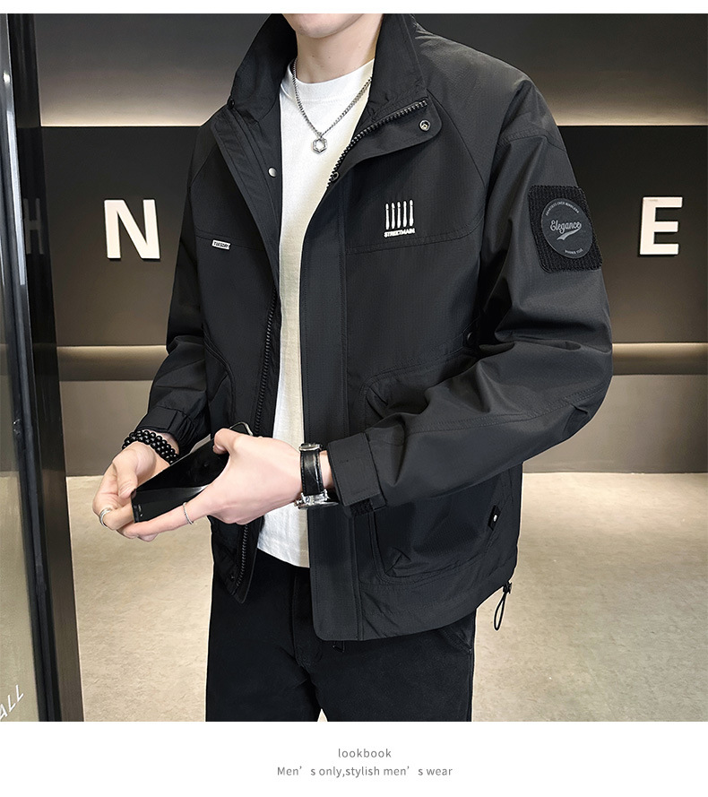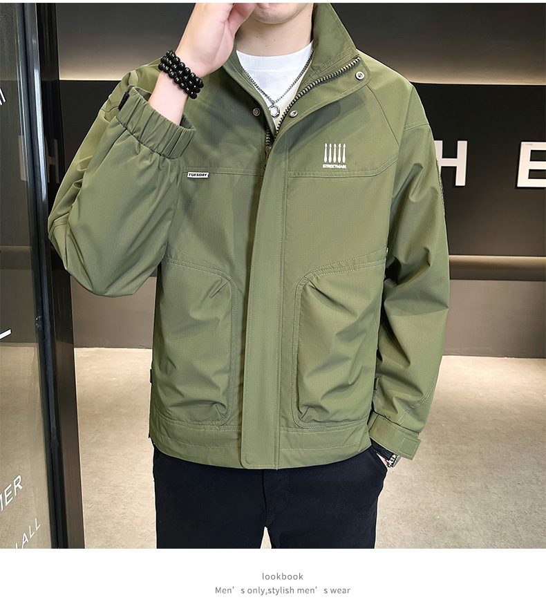 재킷 남성 봄과 가을 트렌디 브랜드 2024 새로운 마이크로 느슨한 수직 칼라 작업 재킷 하이 엔드 센스 재킷 남성 가을 의류스토어 가기