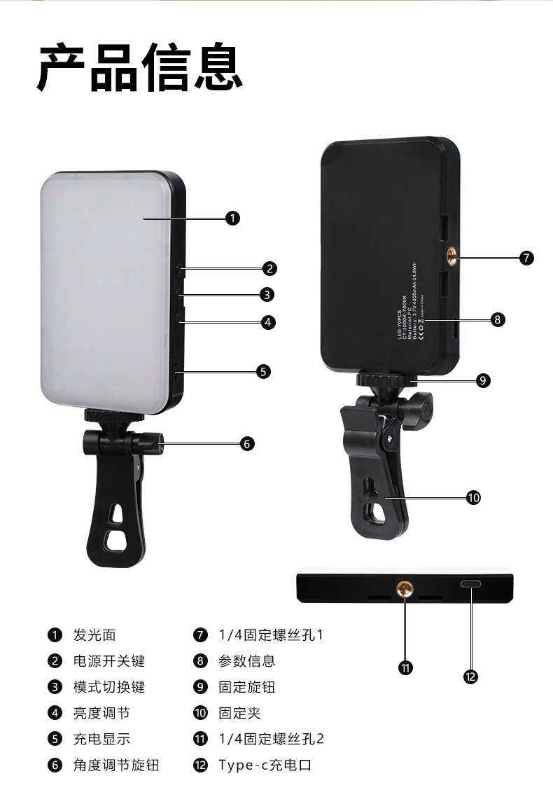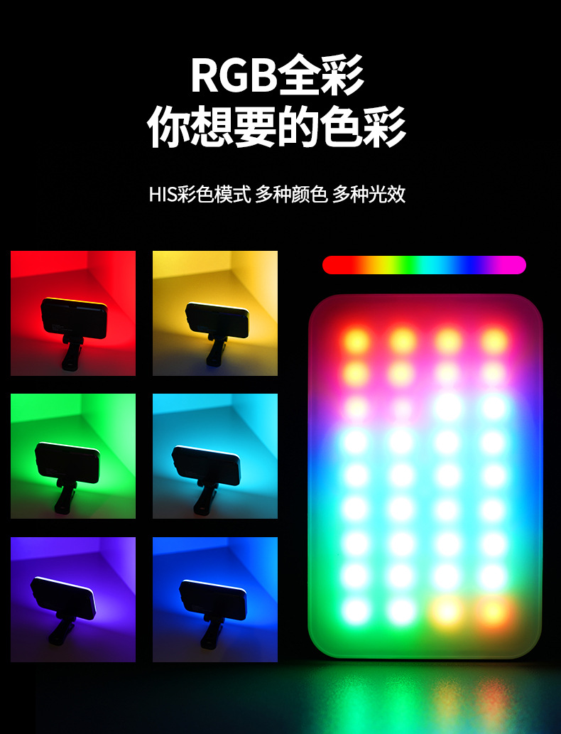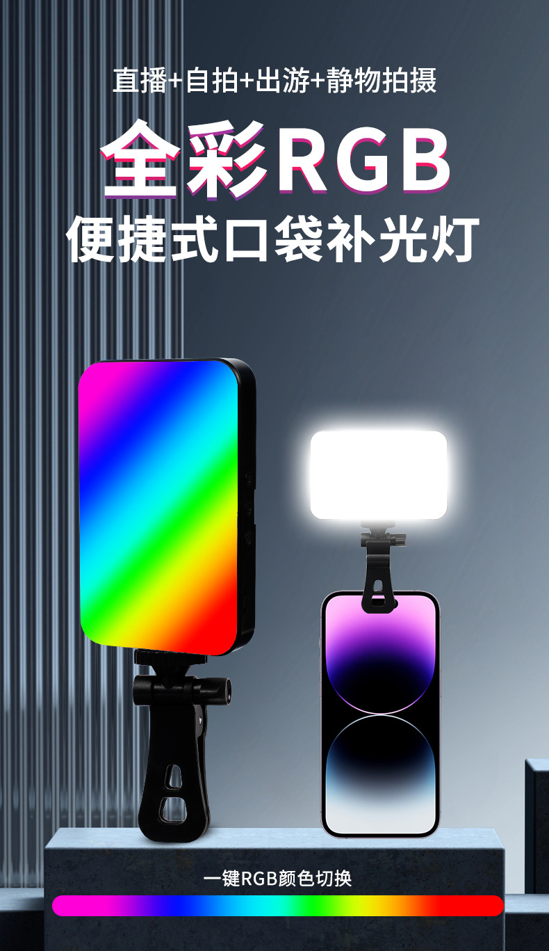 LED 풀컬러 RGB 휴대폰 보조광 미니 휴대용 인기 셀카 촬영 라이브 방송 뷰티 포켓 라이트