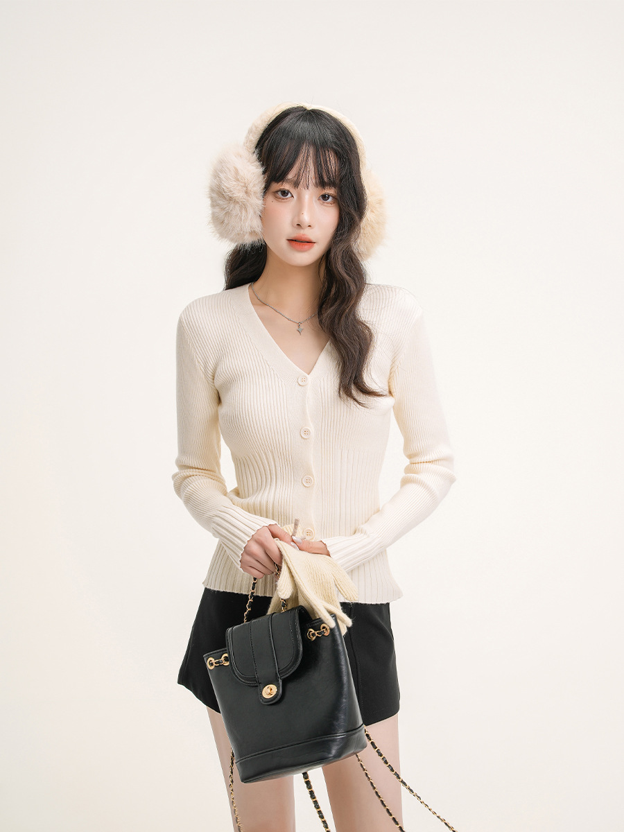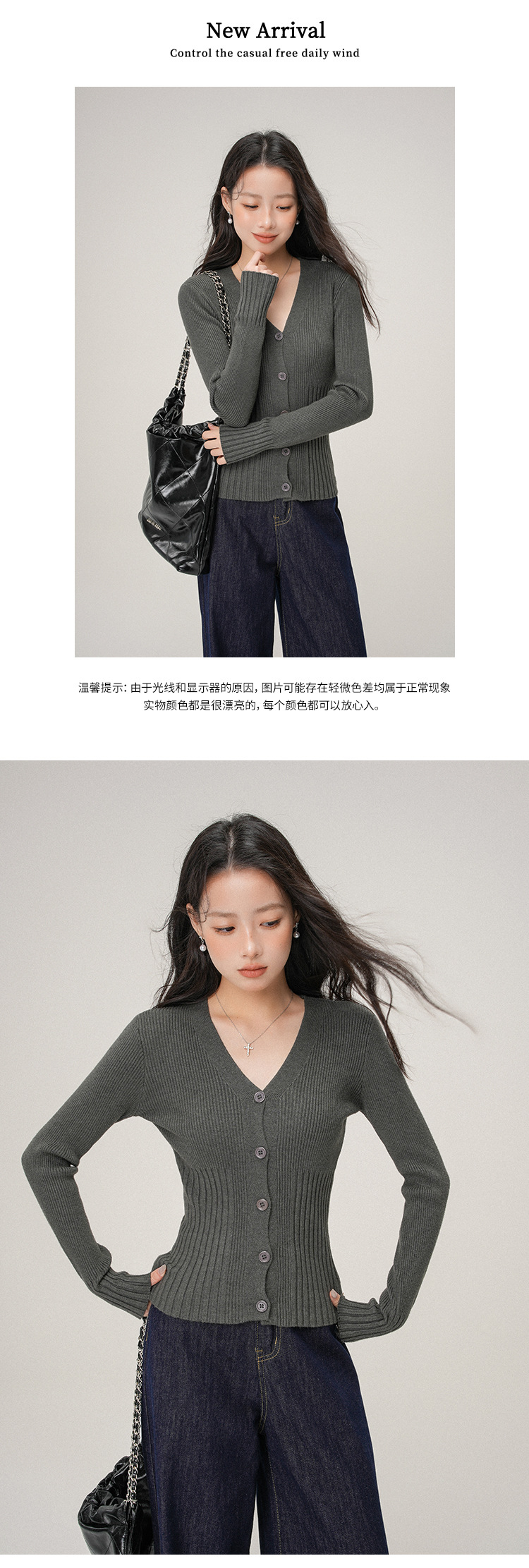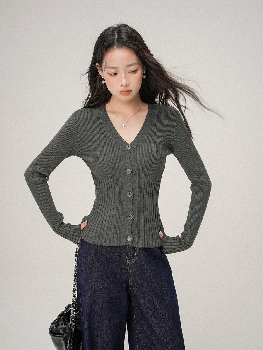 지유 고급 그레이 V 넥 니트 카디건 타이트 웨이스트 핏 재킷 여성의 가을과 겨울 내부 슬리밍 긴팔베이스 탑스토어 가기