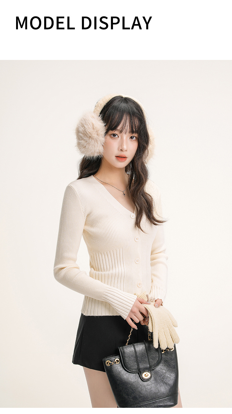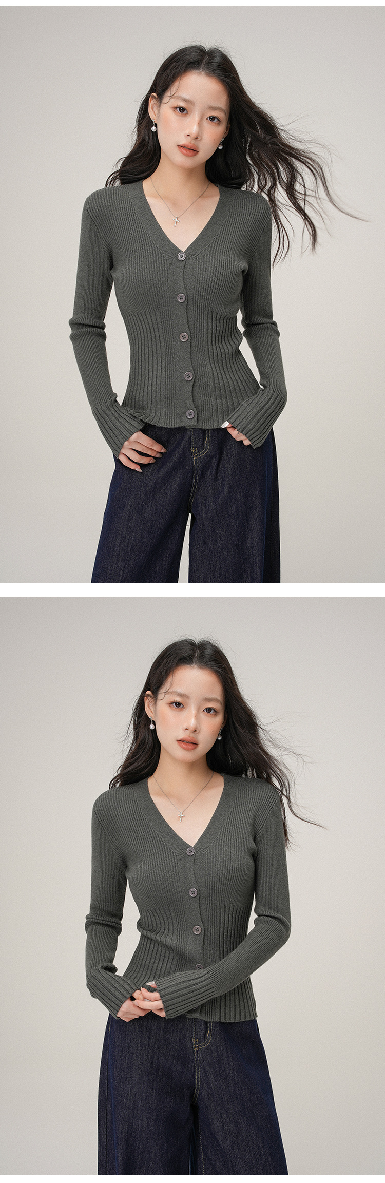 지유 고급 그레이 V 넥 니트 카디건 타이트 웨이스트 핏 재킷 여성의 가을과 겨울 내부 슬리밍 긴팔베이스 탑