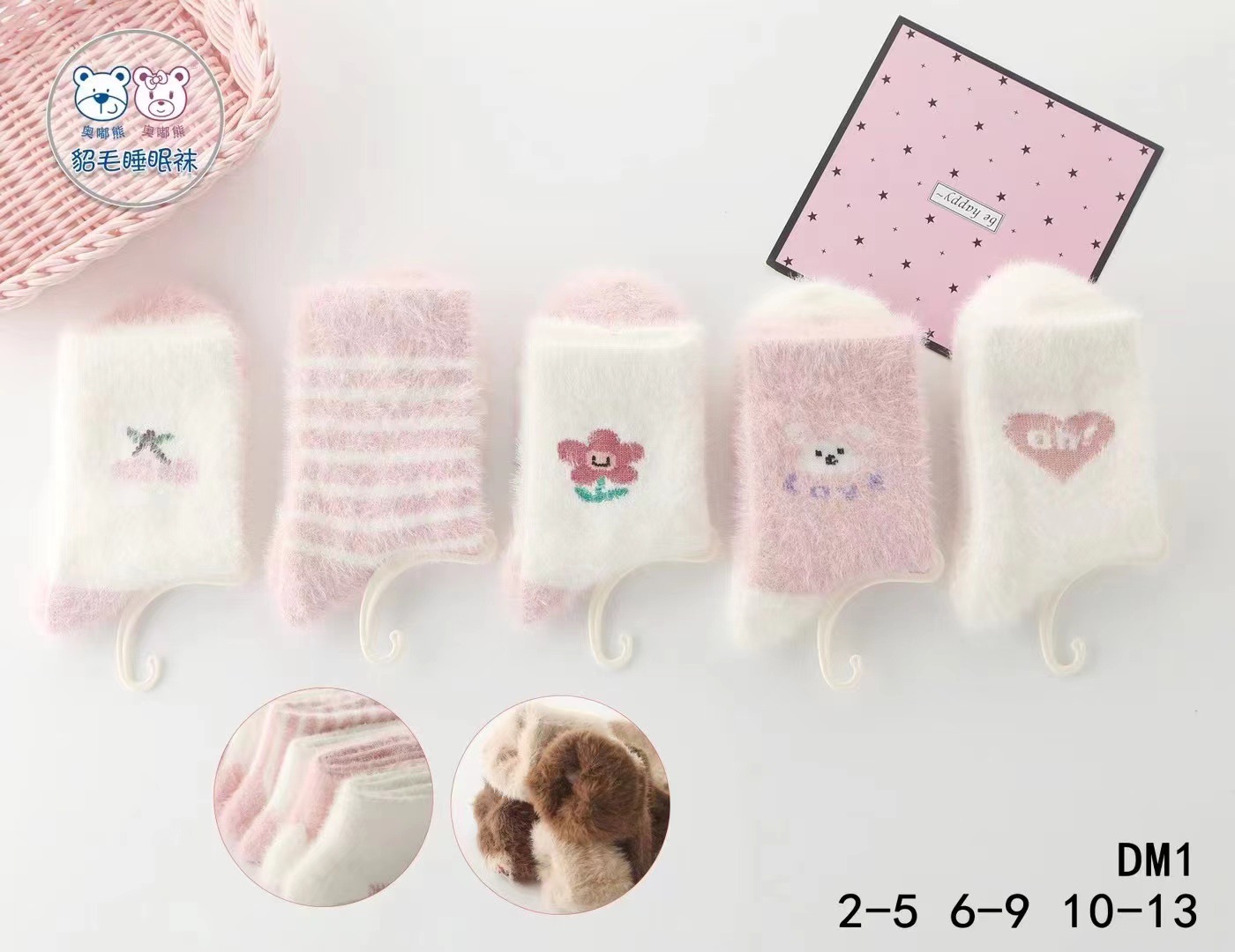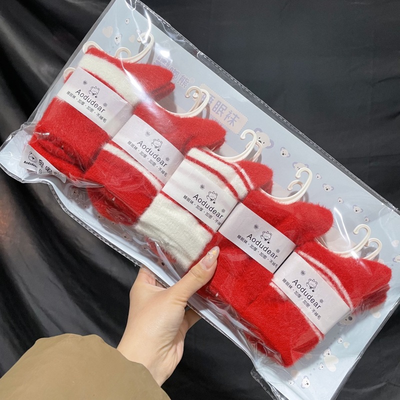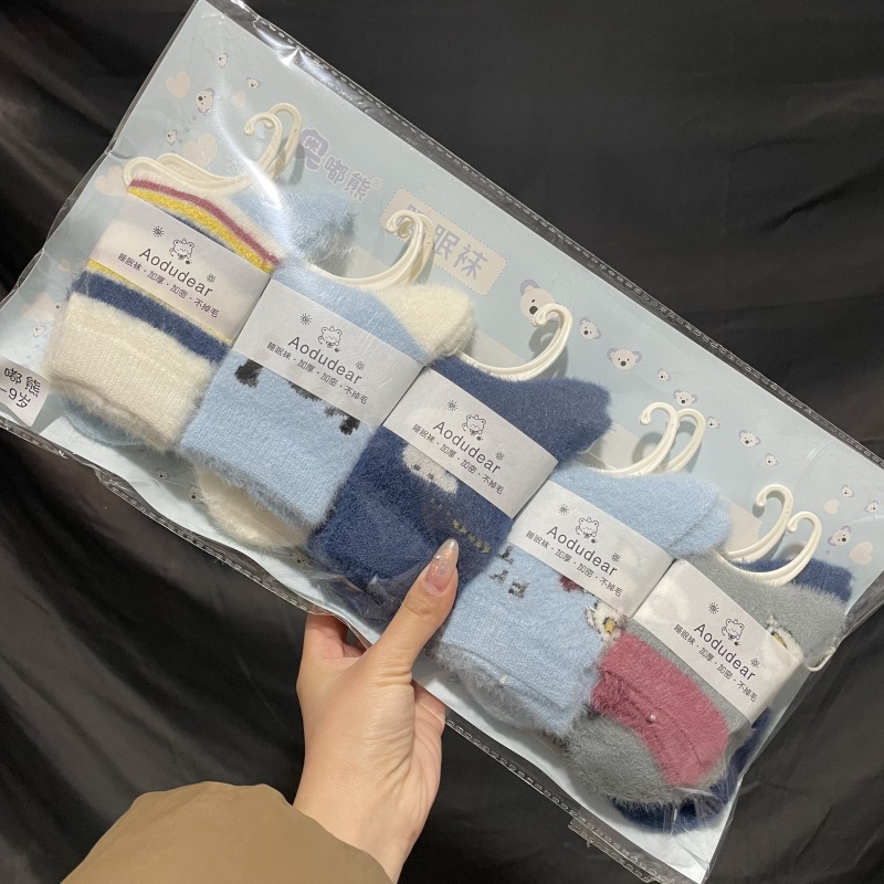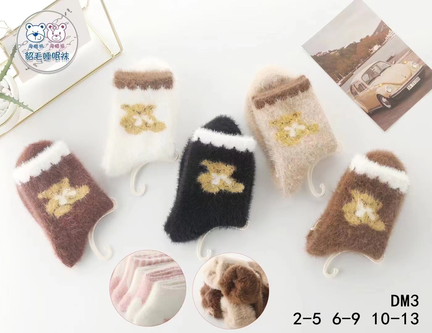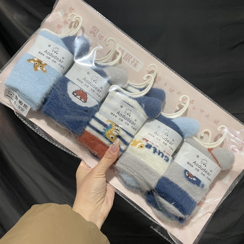 아오두 베어 겨울 어린이 두꺼운 열 저장 따뜻한 모피 양말 귀여운 만화 모방 밍크 벨벳 부드럽고 편안한 수면 양말