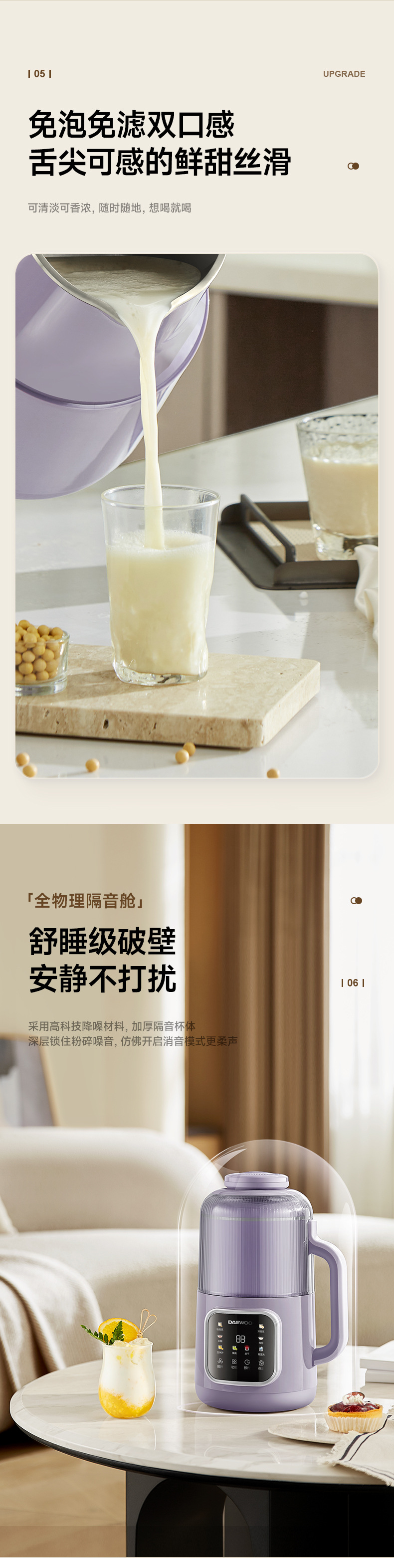 대우 새로운 벽 깨는 기계 가정용 완전 자동 무음 비 잔류 물 작은 콩 우유 기계 다기능 과즙 기계 통합