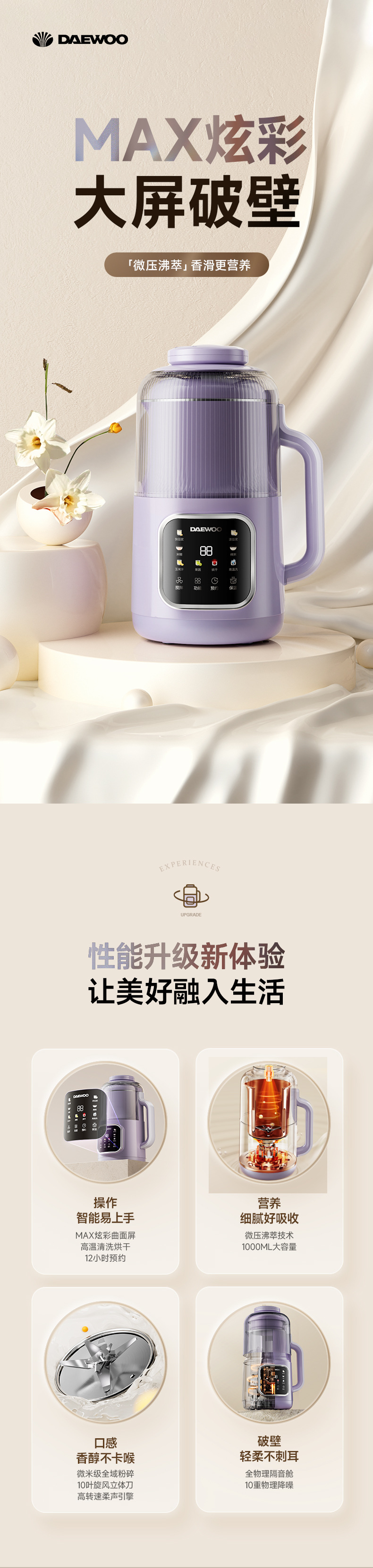 대우 새로운 벽 깨는 기계 가정용 완전 자동 무음 비 잔류 물 작은 콩 우유 기계 다기능 과즙 기계 통합스토어 가기