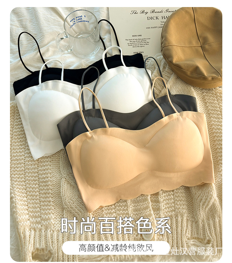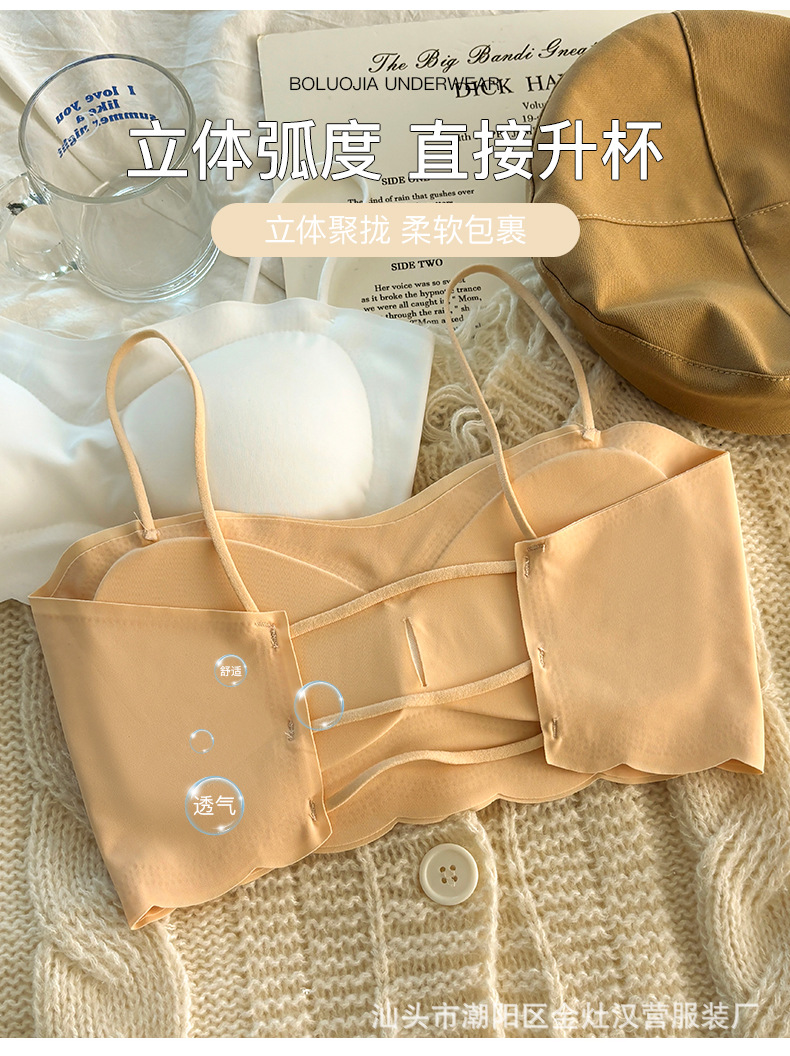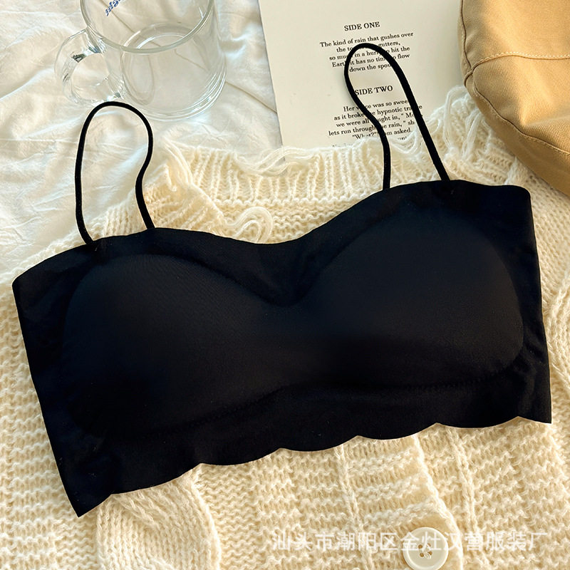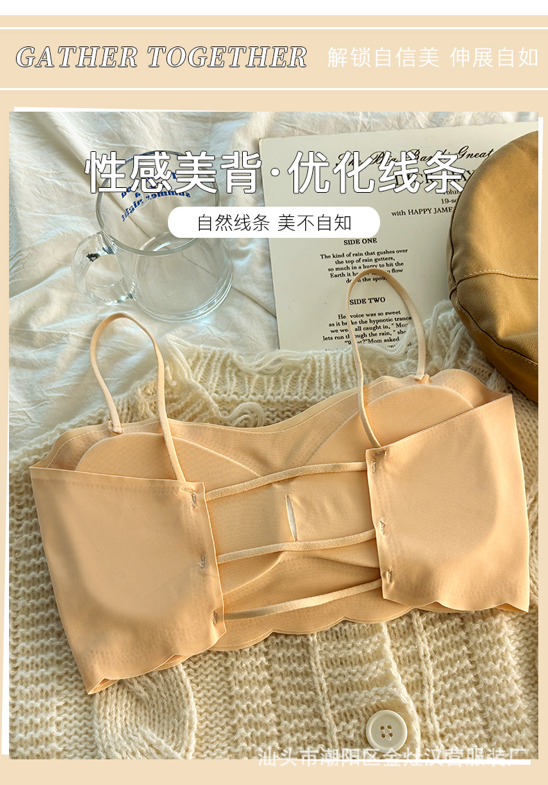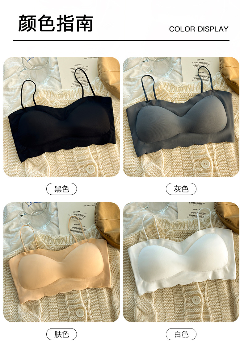 속옷 여성 아이스 실크 개발 중학생 소녀 가슴 포장 스포츠 충격 방지 작은 가슴 U 자형 튜브 탑 조끼 브라