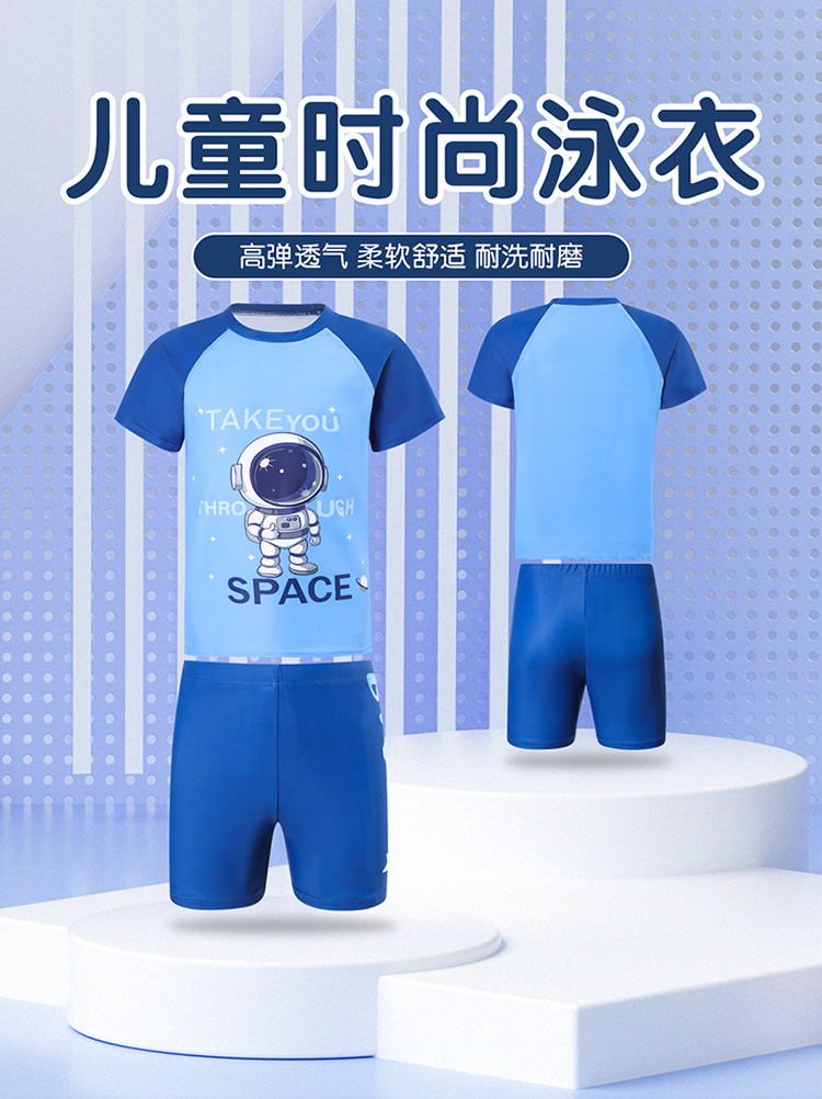 어린이 수영복 소년 선 스크린 분할 수영복 대형 어린이 짧은 소매 만화 세트 해변 온천 수영복 도매