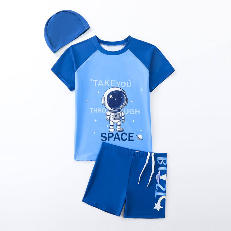 어린이 수영복 소년 선 스크린 분할 수영복 대형 어린이 짧은 소매 만화 세트 해변 온천 수영복 도매스토어 가기