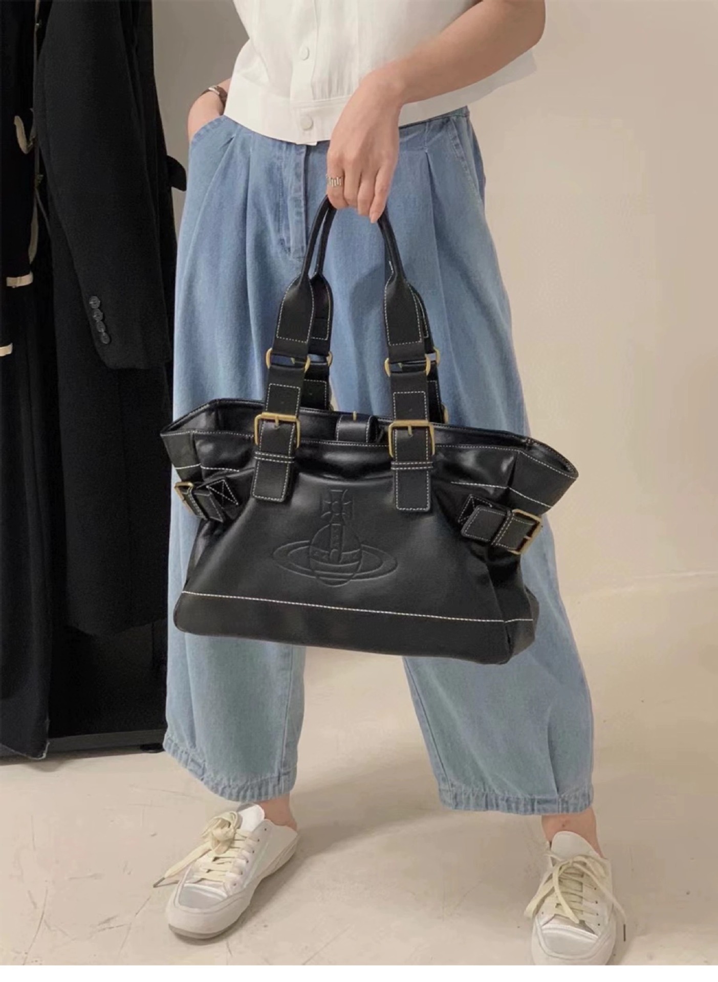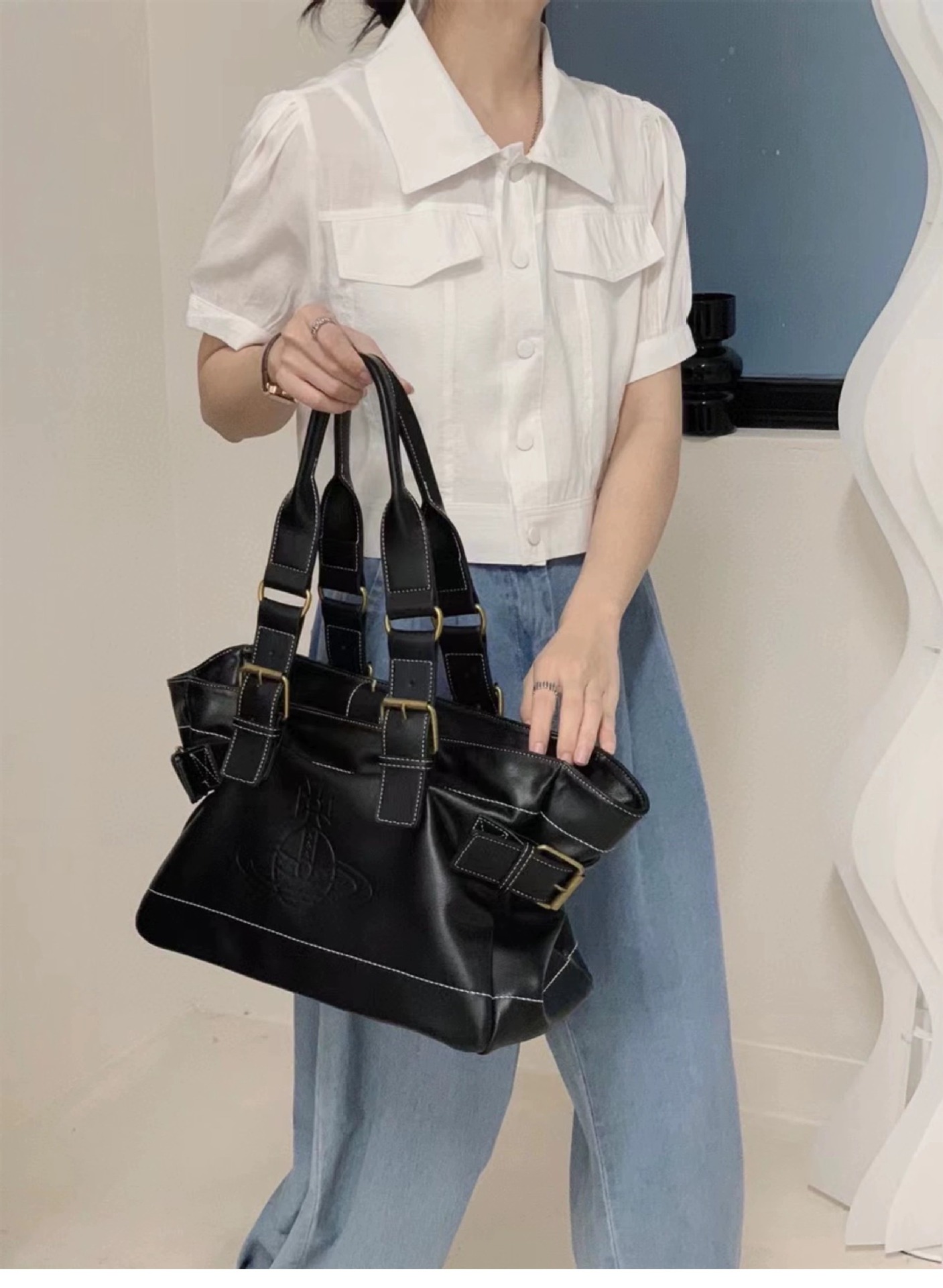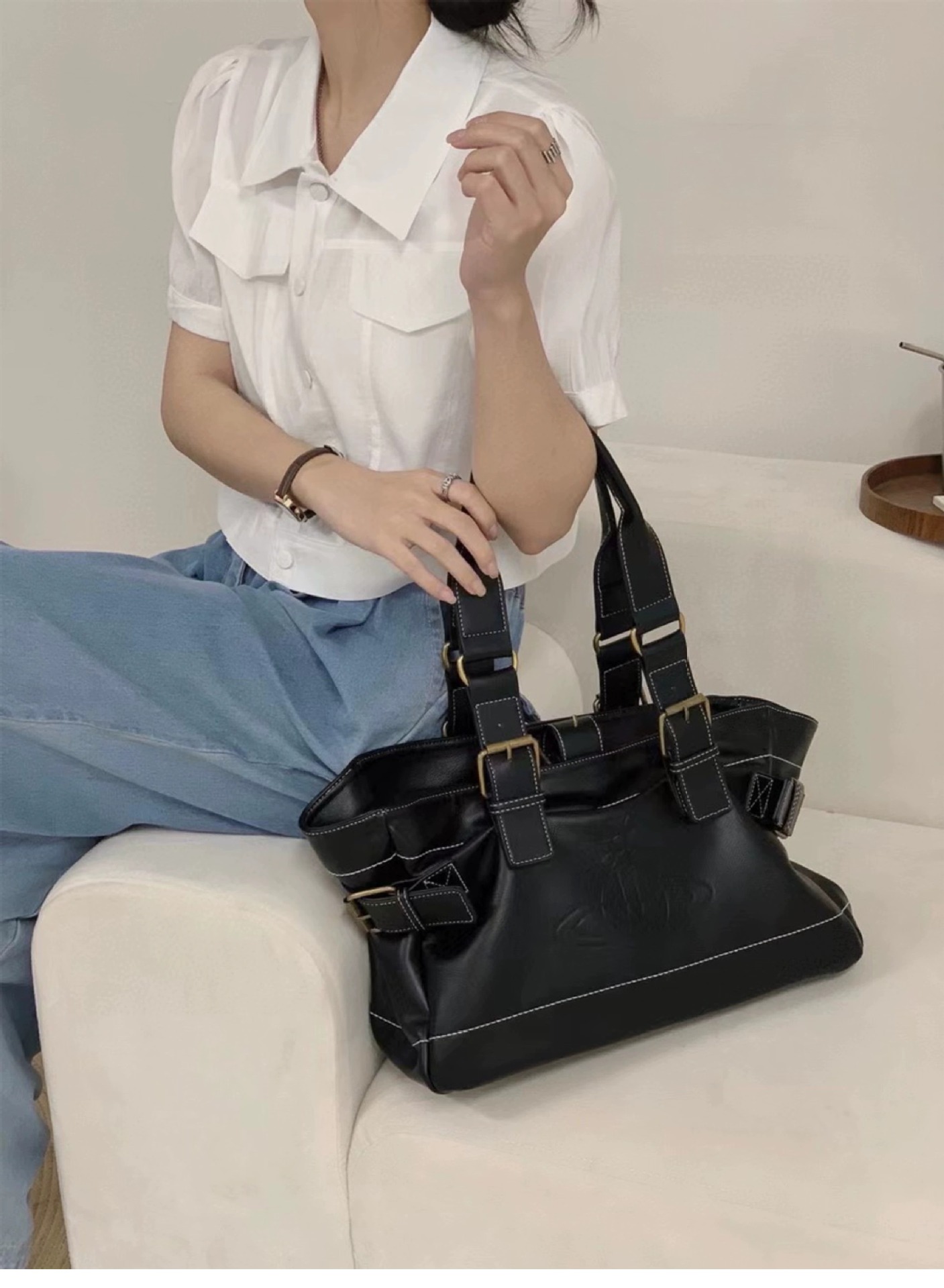 황후 Dowager 가방 부드러운 가죽 휴대용 단일 어깨 통근 가방 대용량 틈새 디자인 중간 Gutta 토성 가방스토어 가기