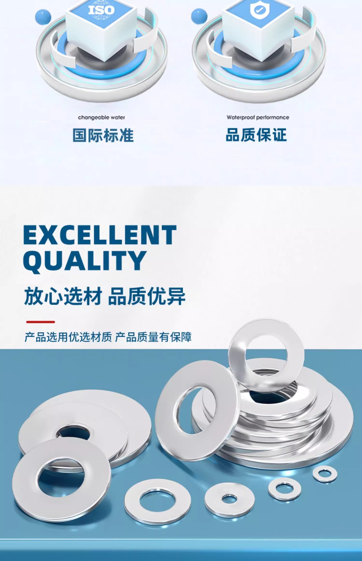 2205 듀플렉스 스테인레스 스틸 8.8 등급 고강도 플랫 와셔 시트 DIN125 스크류 GB97.1 쿠션 M6-M36스토어 가기