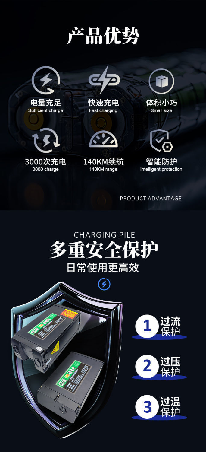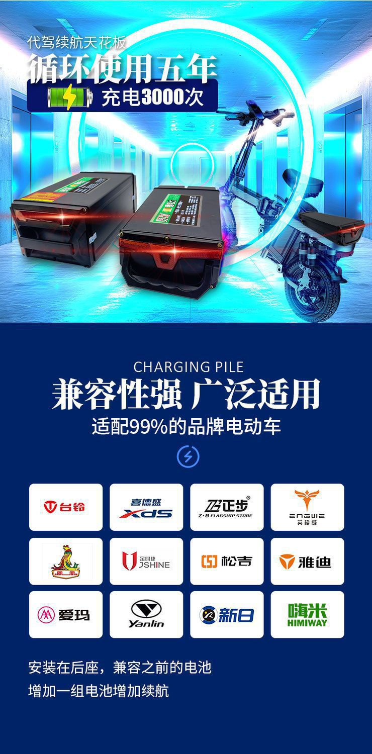 후면 생성 구동 48V 리튬 배터리 후면 특수 접이식 자동차 긴 내구성 45 대용량 분리 가능한 리튬 배터리스토어 가기
