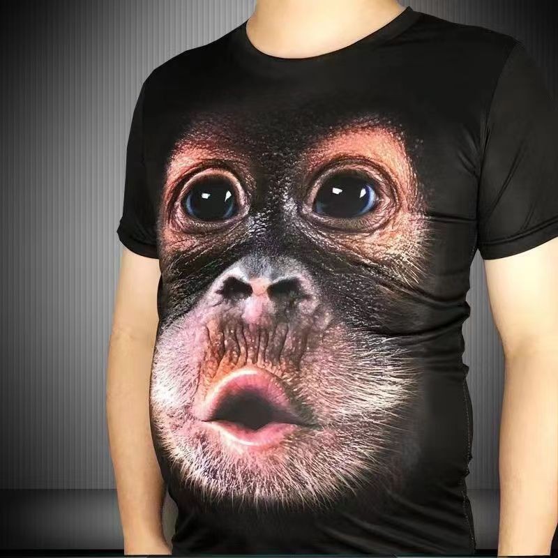 2024 동물 디지털 인쇄 남자의 짧은 소매 재미 고릴라 3D 짧은 소매 여름 티셔츠 느슨한 토메 뜨거운 판매스토어 가기