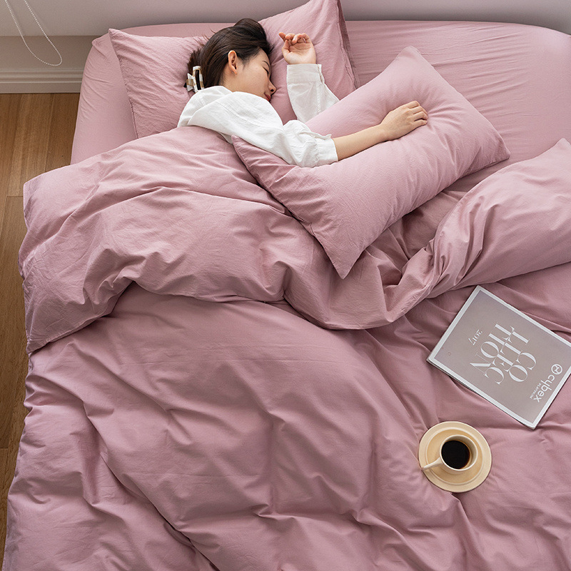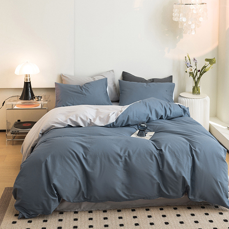 60 면 4 피스 세트 100 면 신장 긴 스테이플 코튼 트 하이 그레이드 단색 블루 퀼트 커버 홈 텍스타일 침대 모자스토어 가기