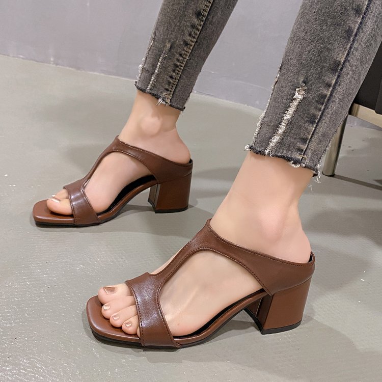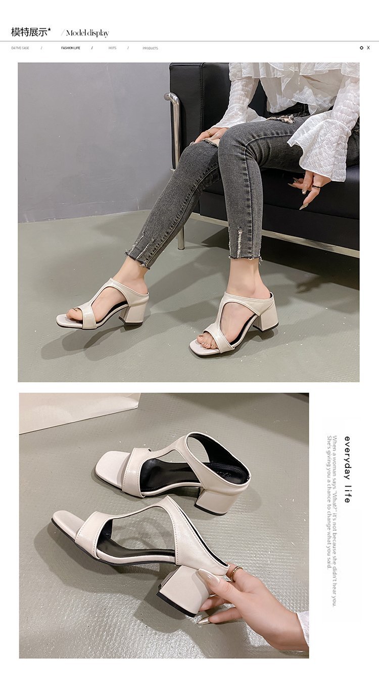유럽과 미국의 로마 샌들 여성 프렌치 스타일 여름 올 매치 아웃웨어 인터넷-유명한 스퀘어 토 오픈 토 한 캐릭터 두꺼운 힐 하이힐 샌들스토어 가기