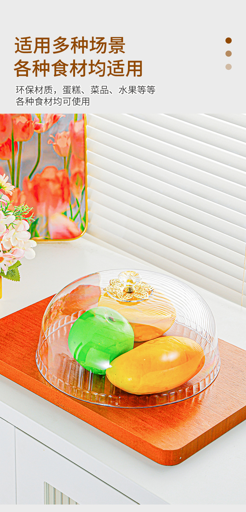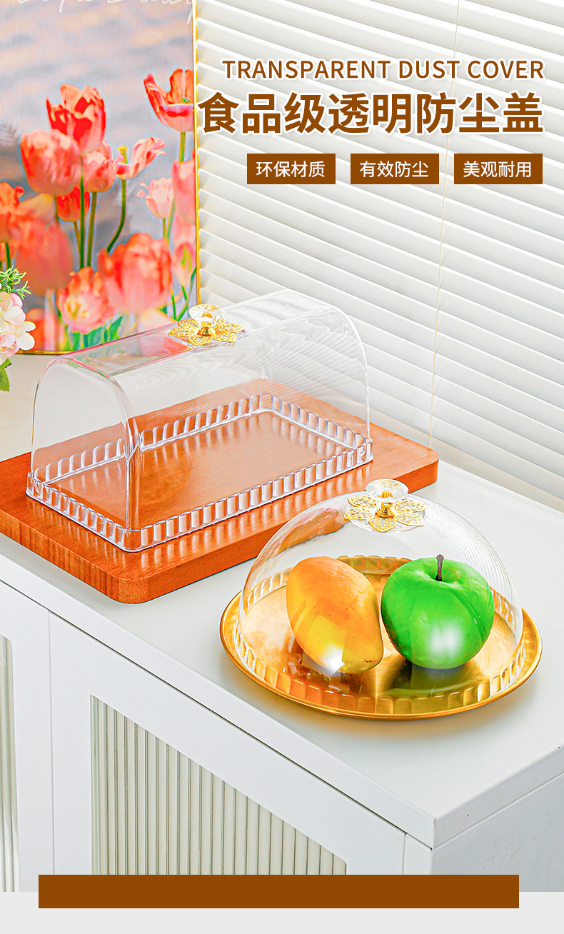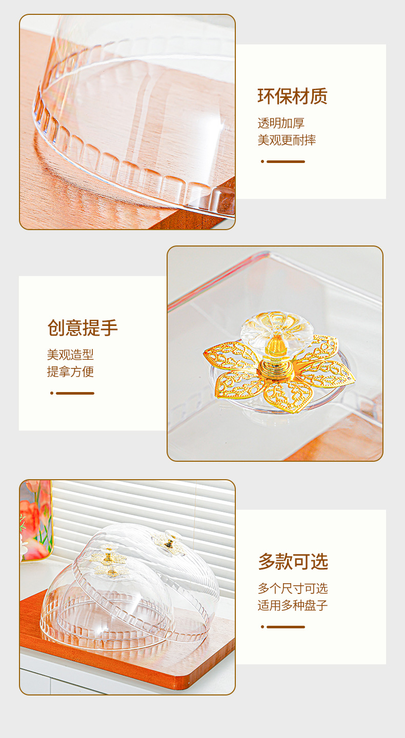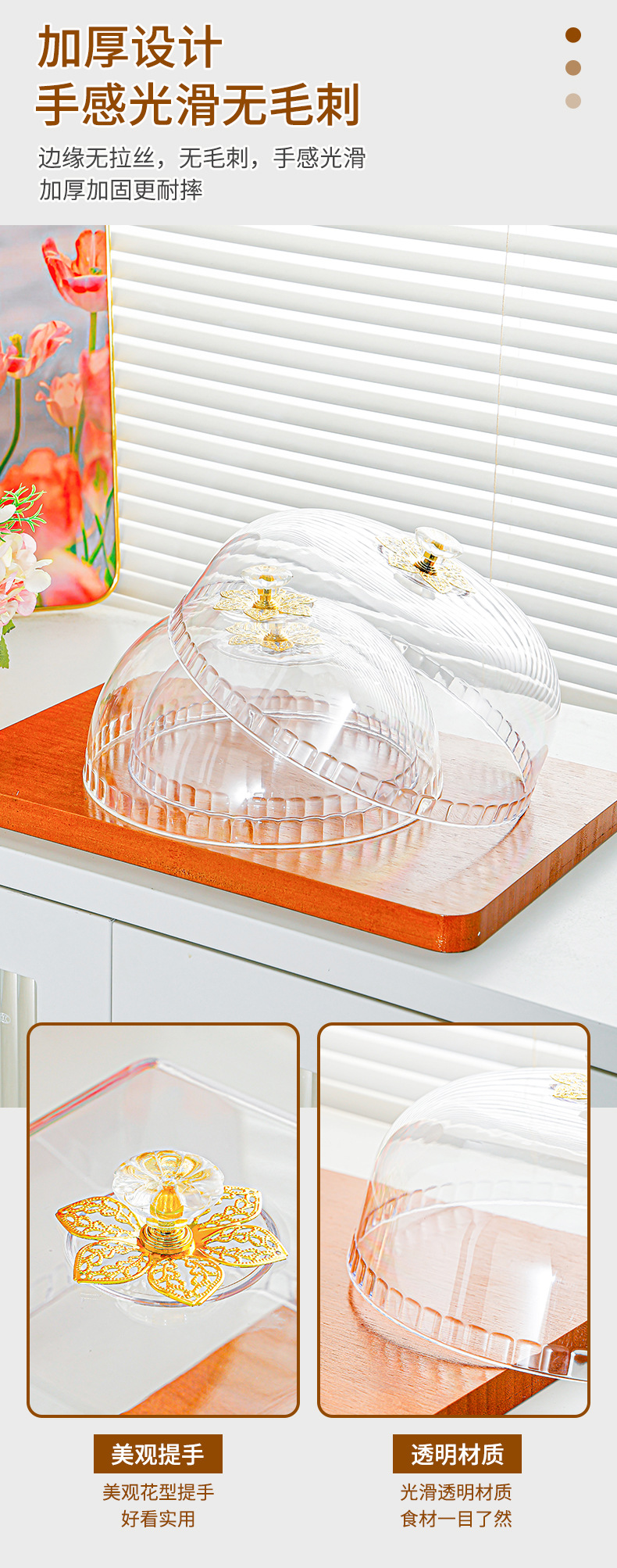PS/PET 아크릴 투명 식품 먼지 커버 낙하 방지 원형 플라스틱 신선 유지 커버 그릇 커버 케이크 스낵 식사 커버 라이트 럭셔리 스타일