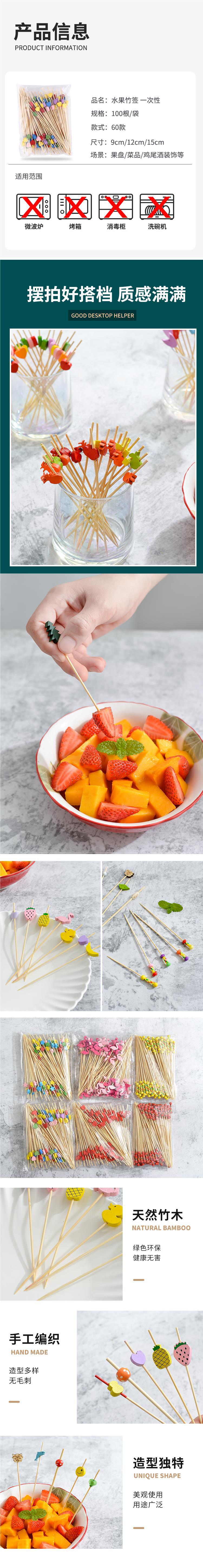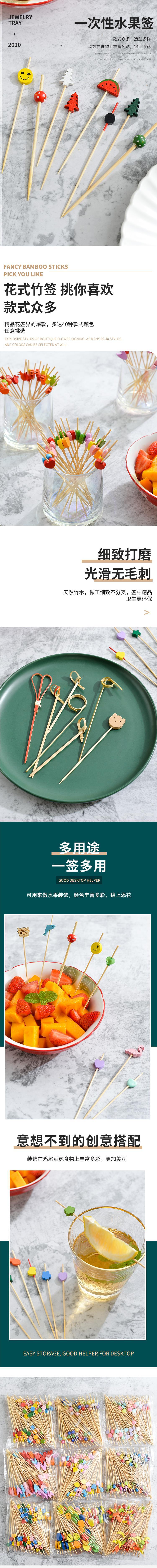 일회용 과일 포크 과일 스틱 대나무 스틱 꽃 스틱 창조적 인 이쑤시개 칵테일 샌드위치 간판 디저트 진쑤안스토어 가기