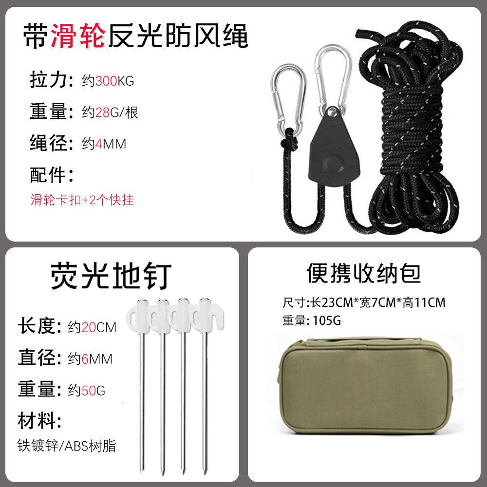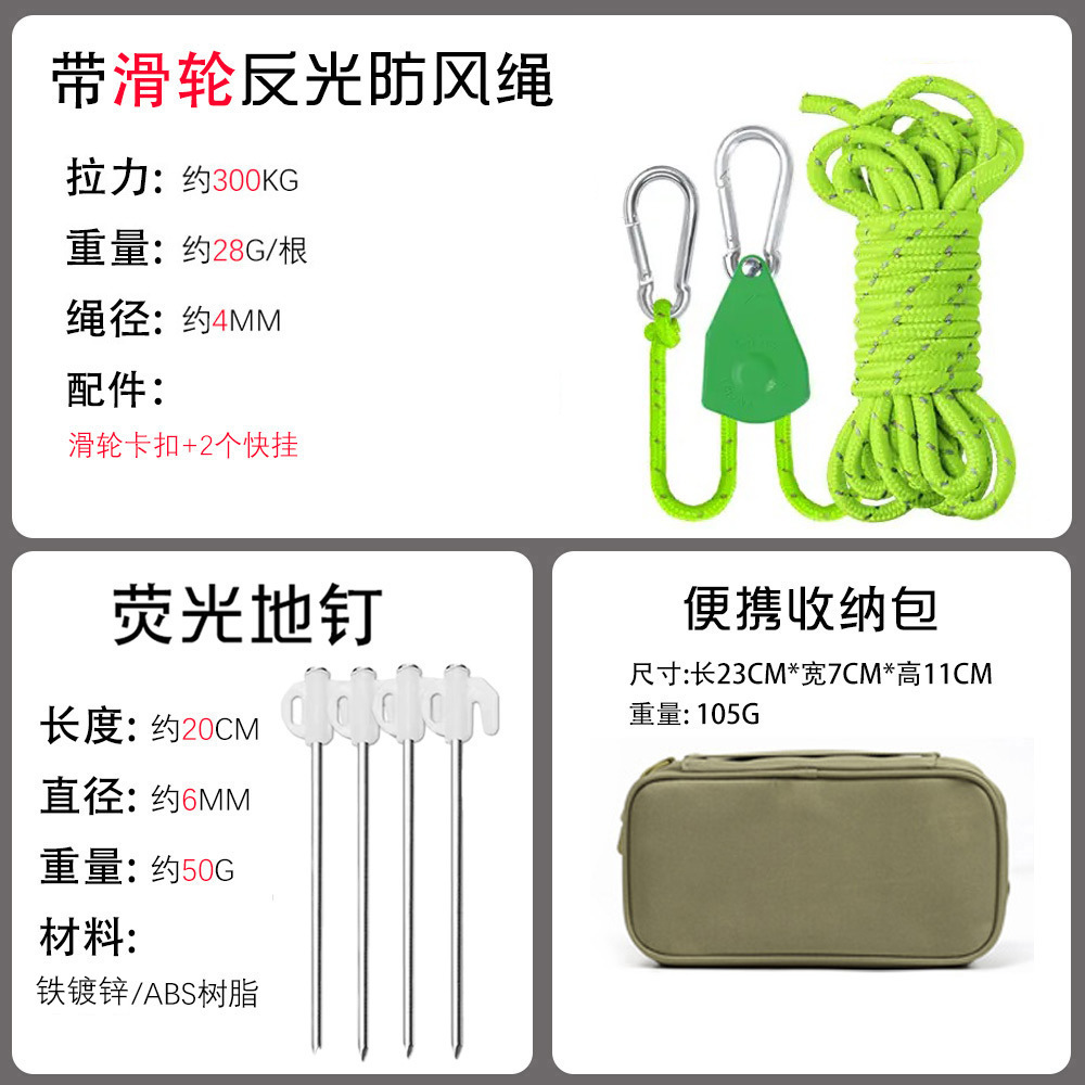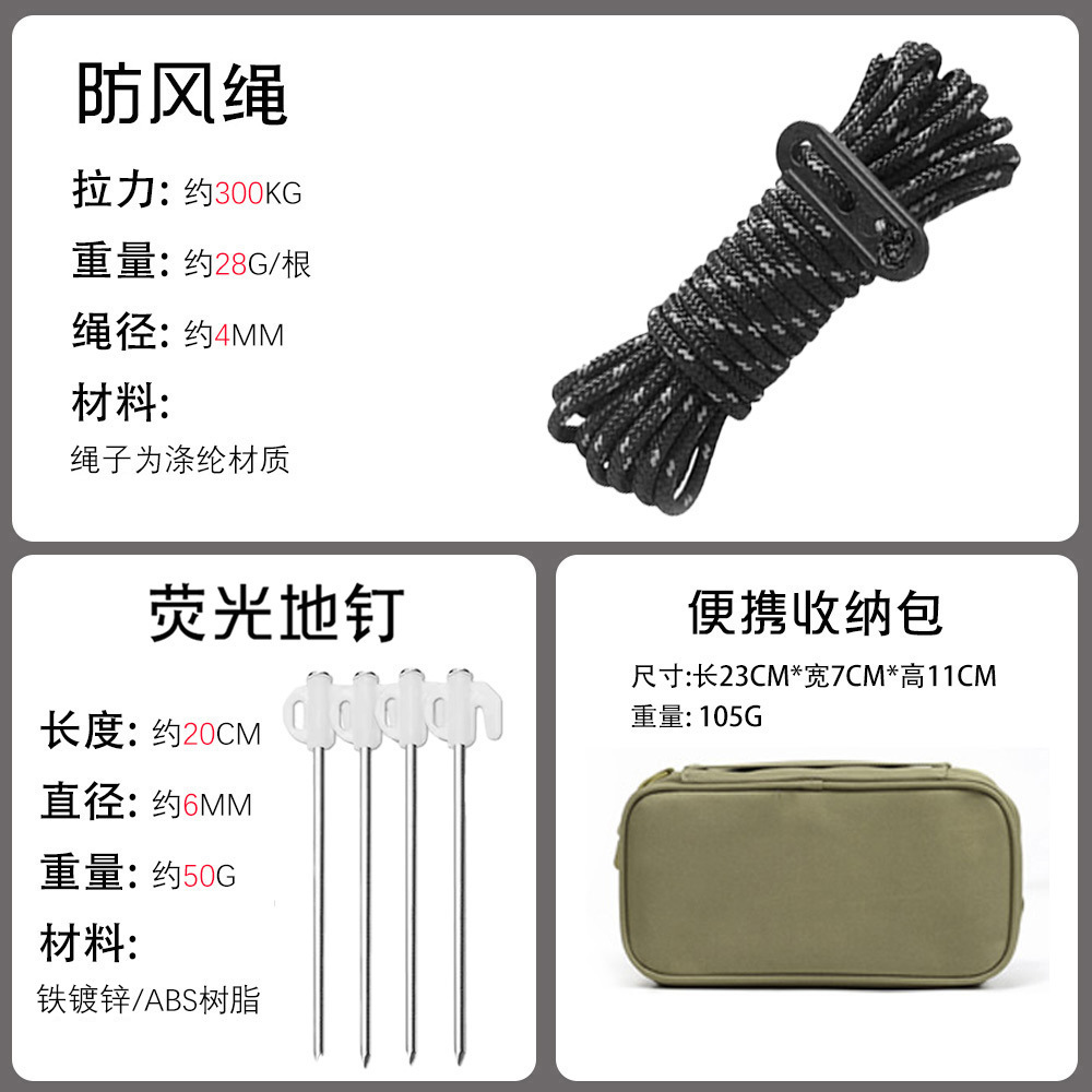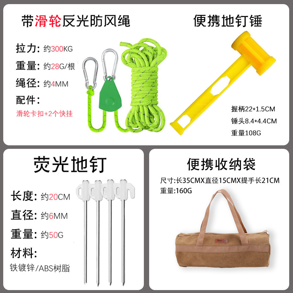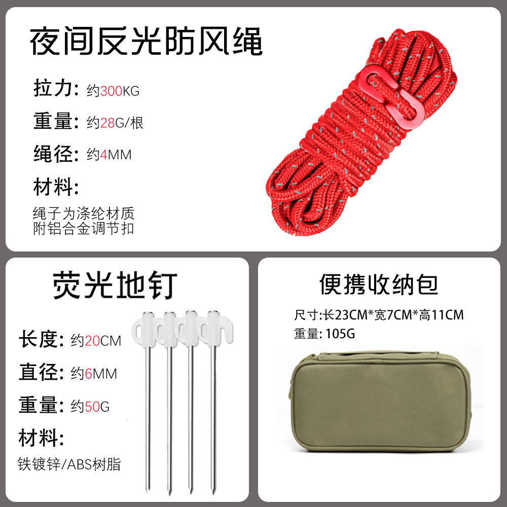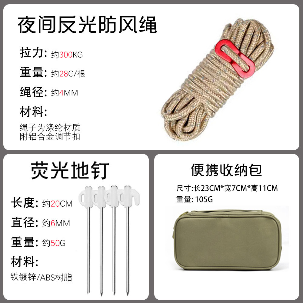 • 형광 롤러 스케이트 반사 방풍 로프 4개 + 접지 못 4개 + 망치 + 카키색 보관 가방