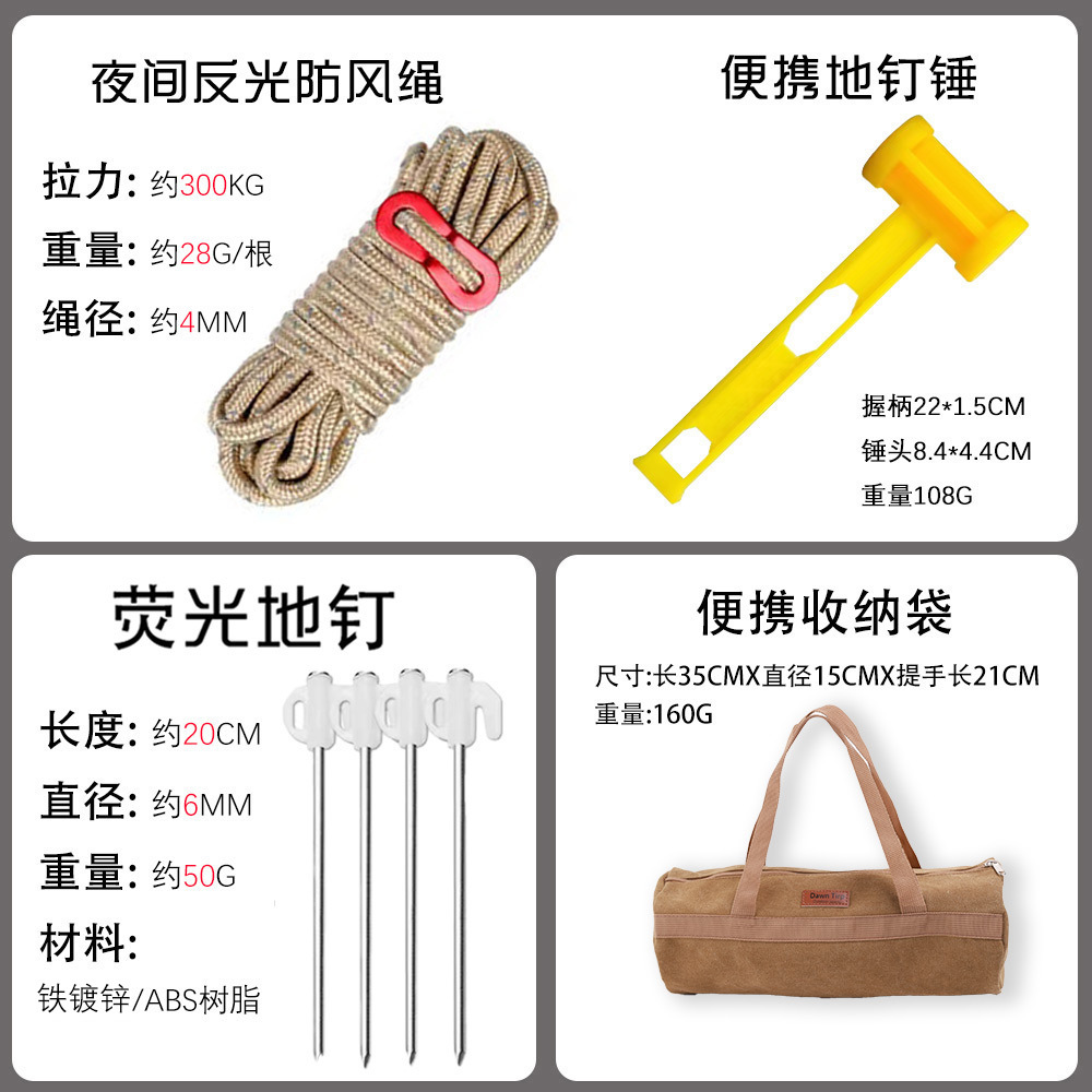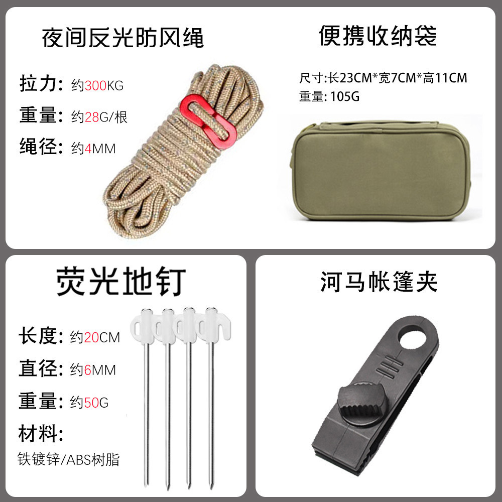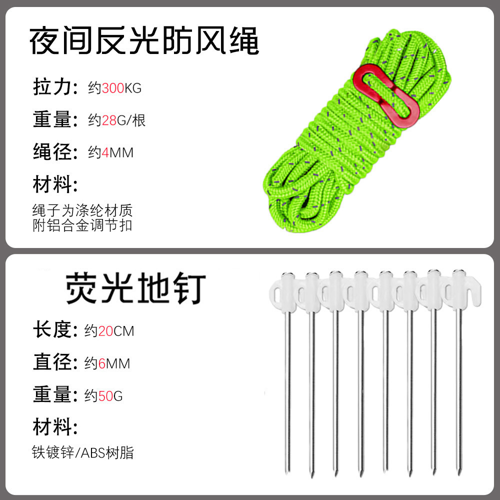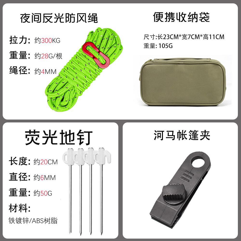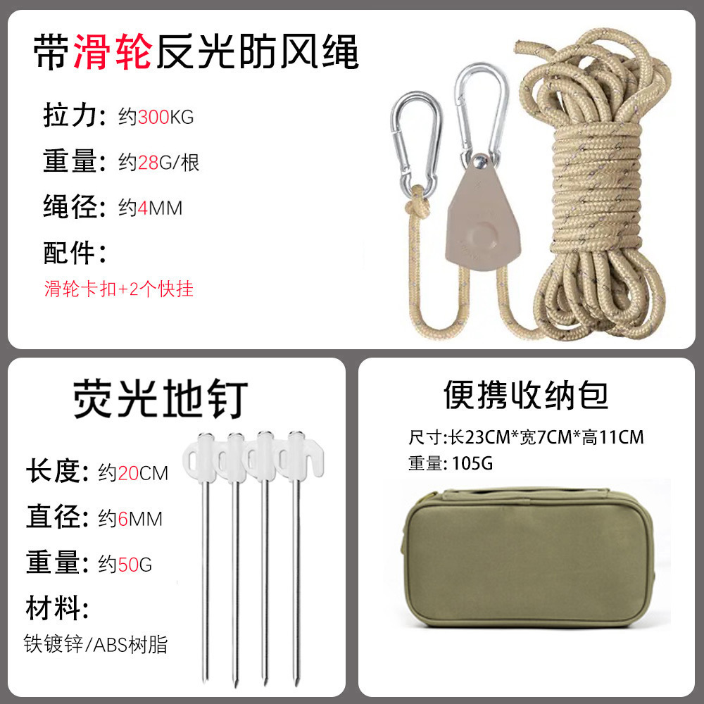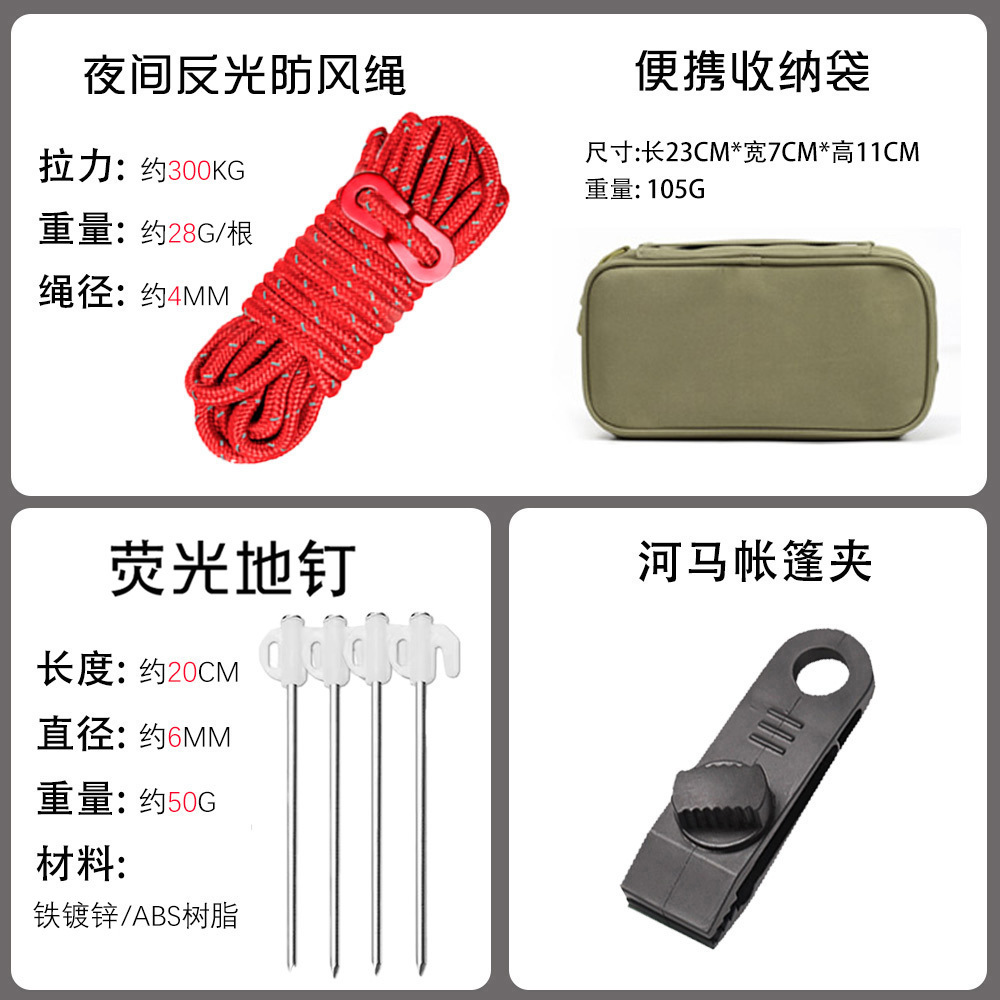 • 형광 롤러 스케이트 반사 방풍 로프 4개 + 접지 못 4개 + 망치 + 카키색 보관 가방
