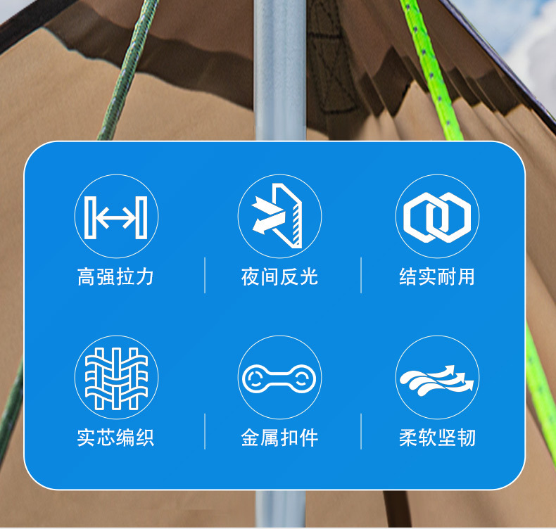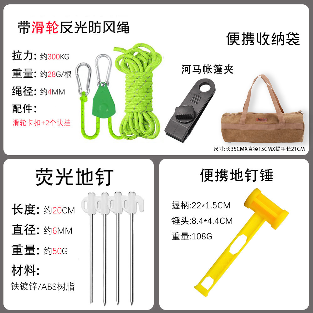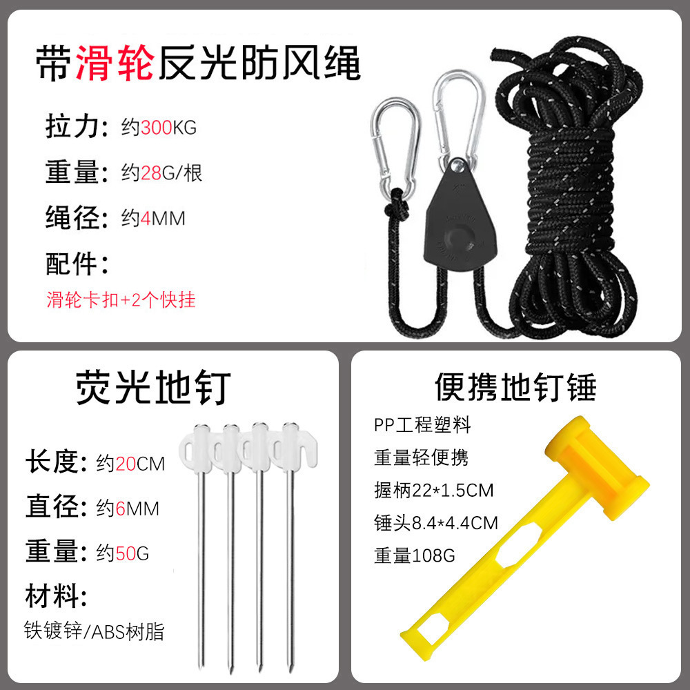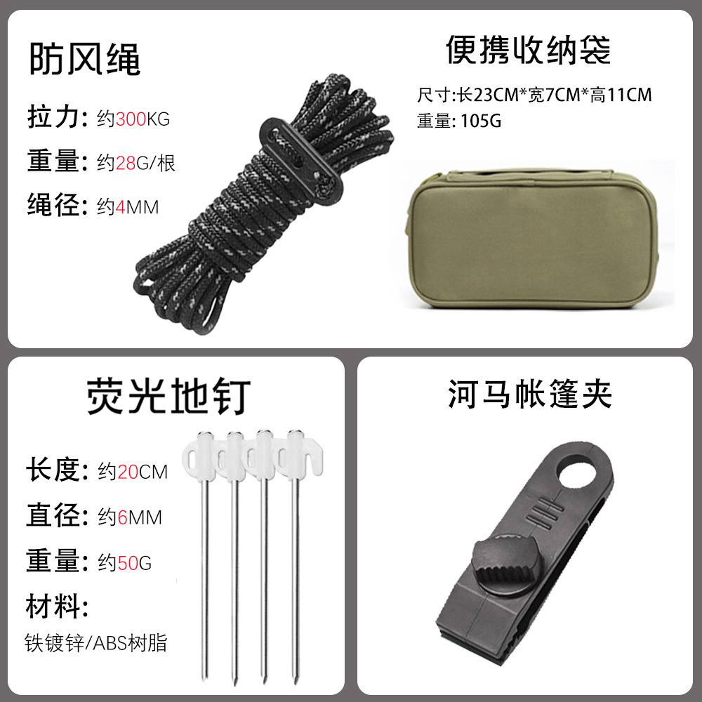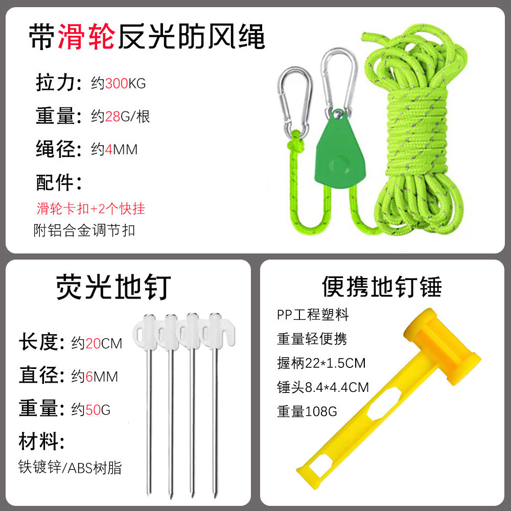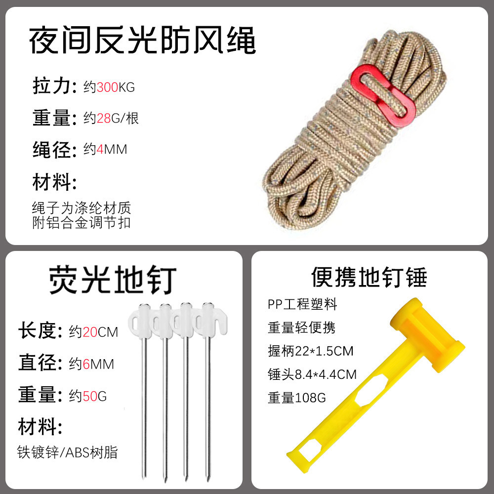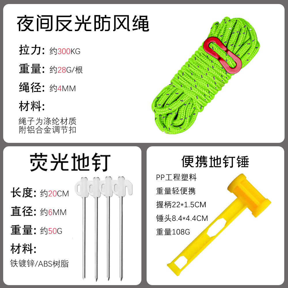• 형광 롤러 스케이트 반사 방풍 로프 4개 + 접지 못 4개 + 망치 + 카키색 보관 가방