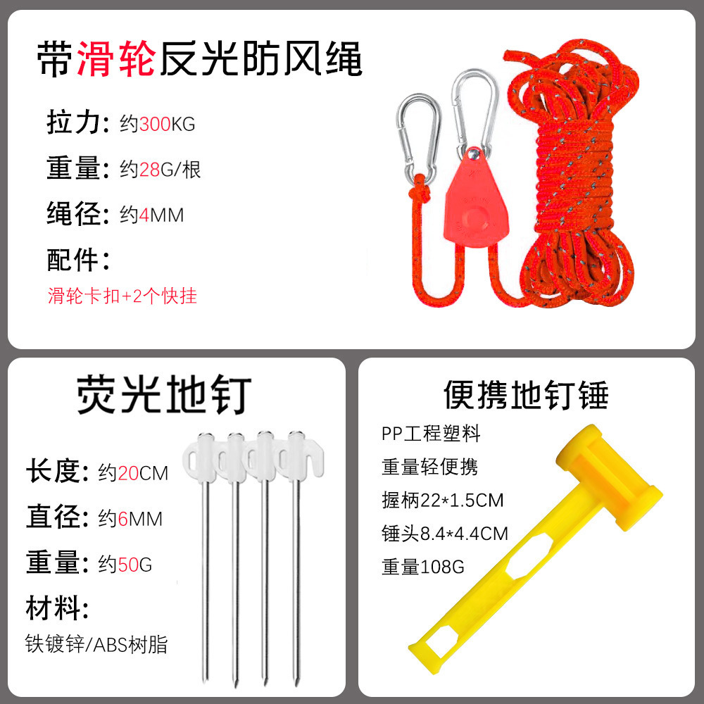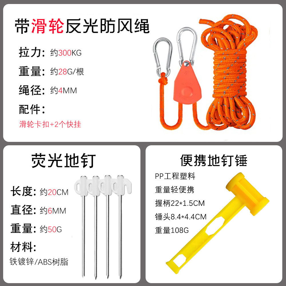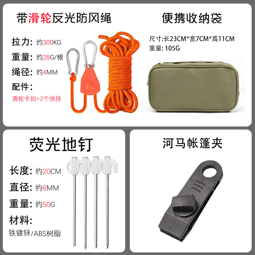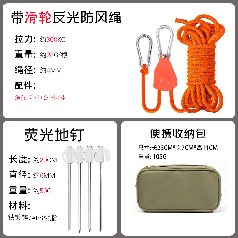 • 주황색 롤러 스케이트 반사 방풍 로프 4개 + 접지 못 4개 + 망치 + 카키색 보관 가방