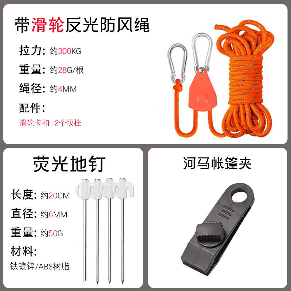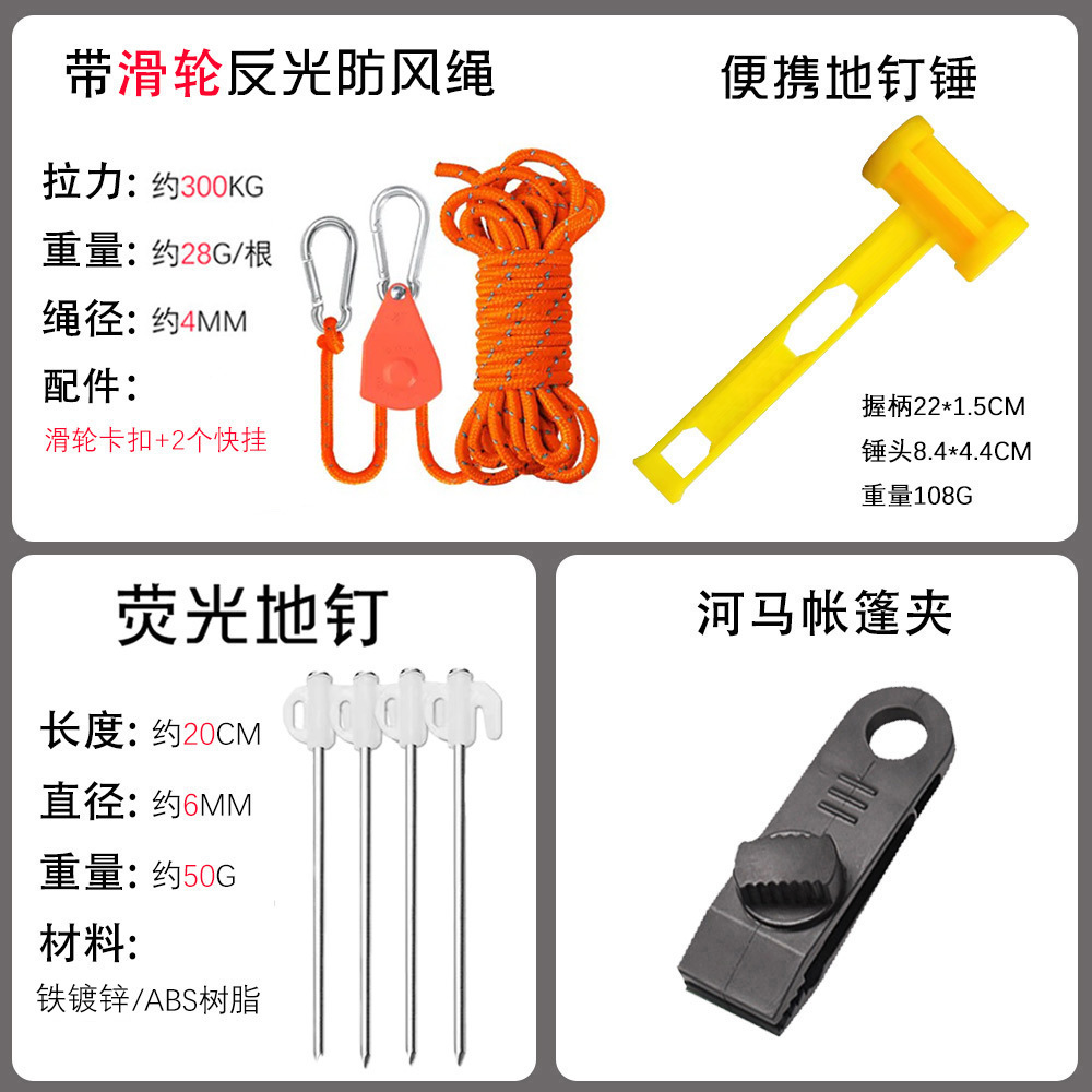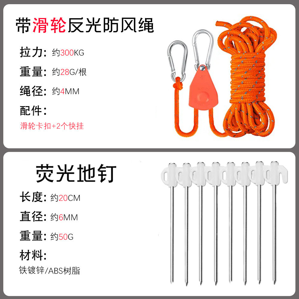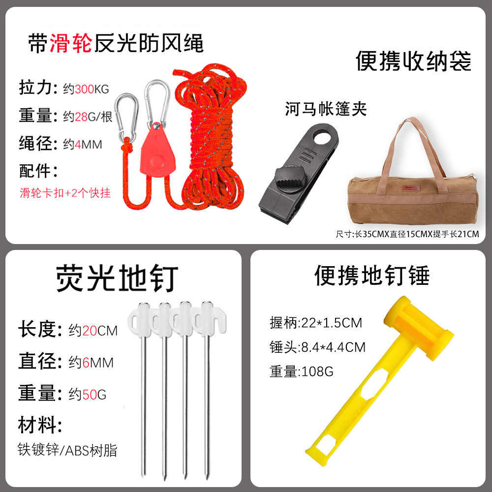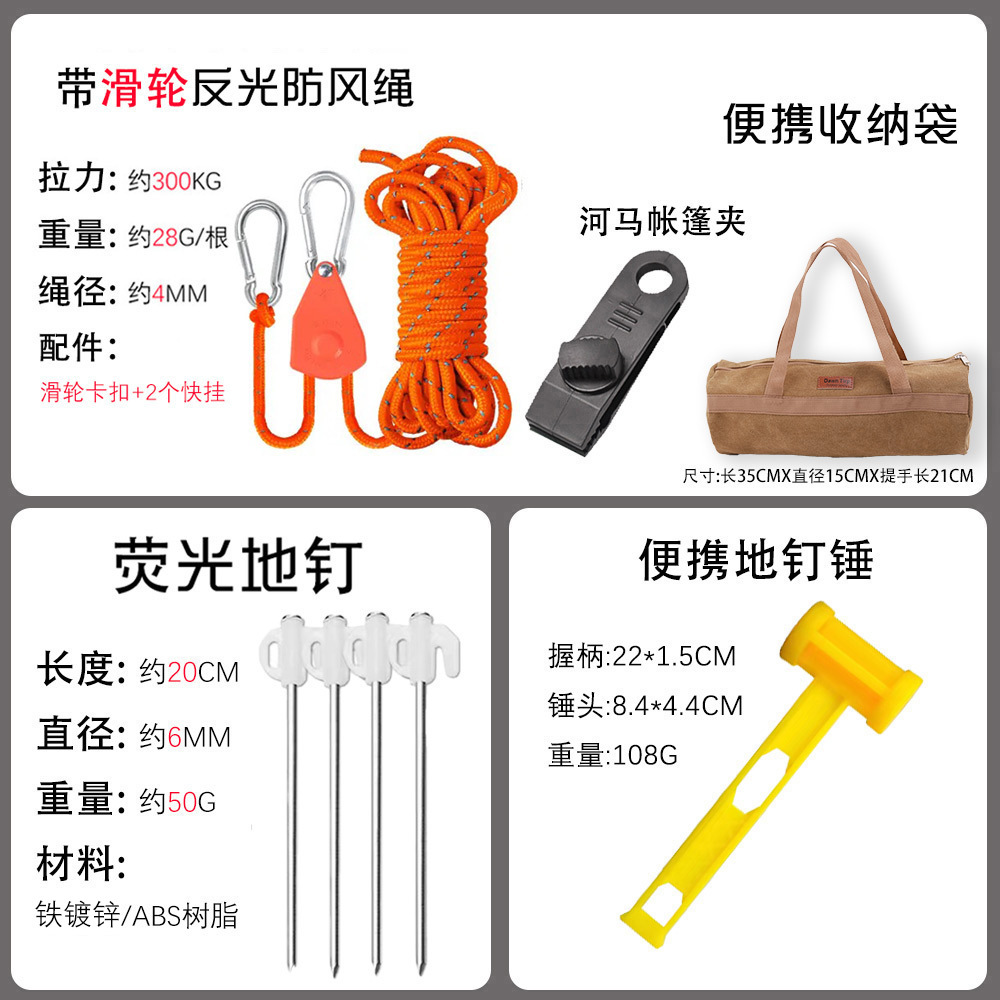 • 주황색 롤러 스케이트 반사 방풍 로프 4개 + 접지 못 4개 + 망치 + 카키색 보관 가방