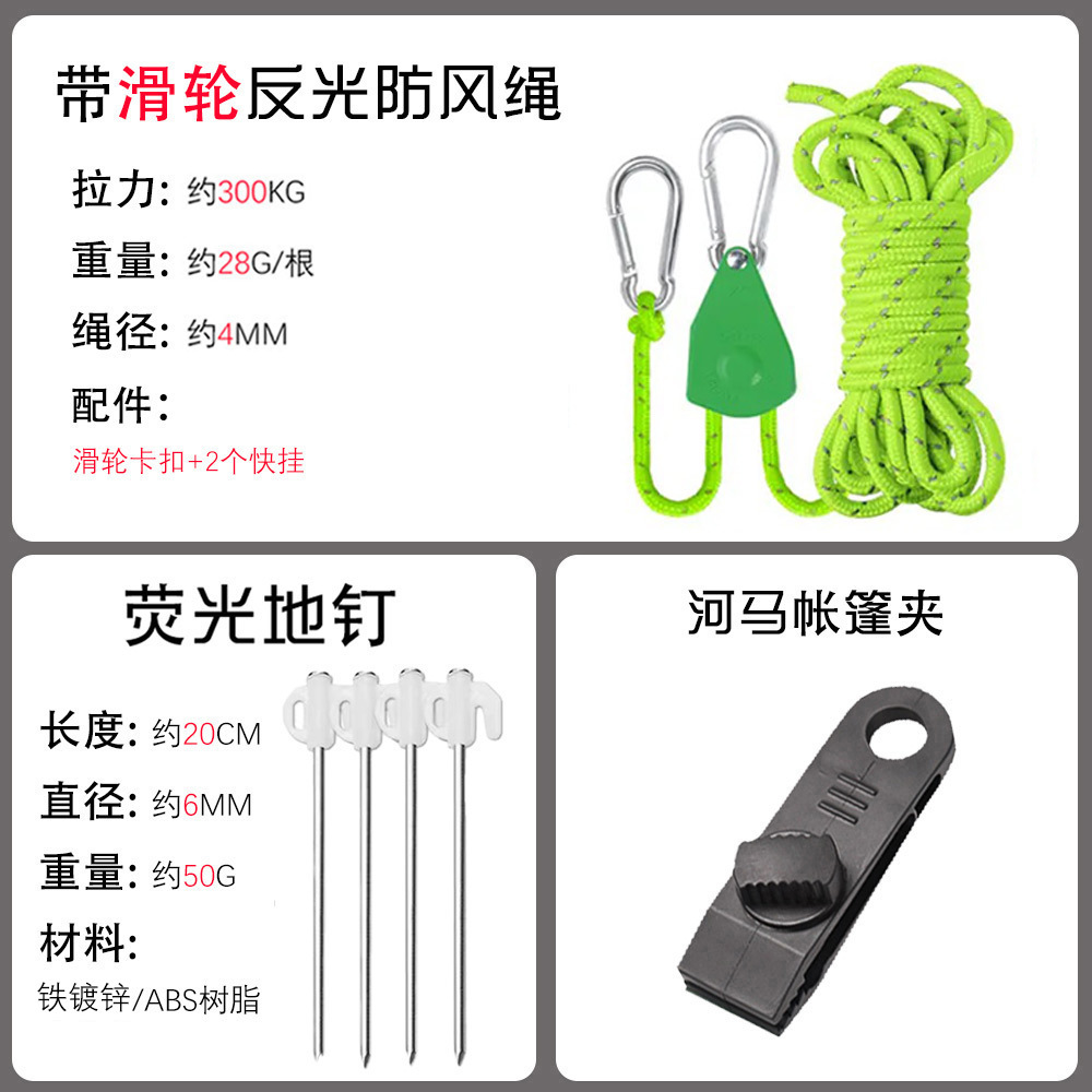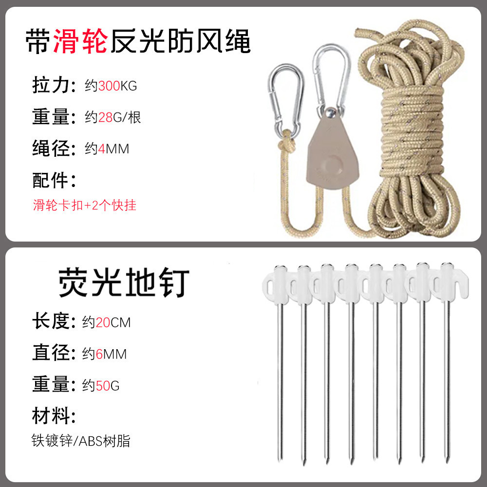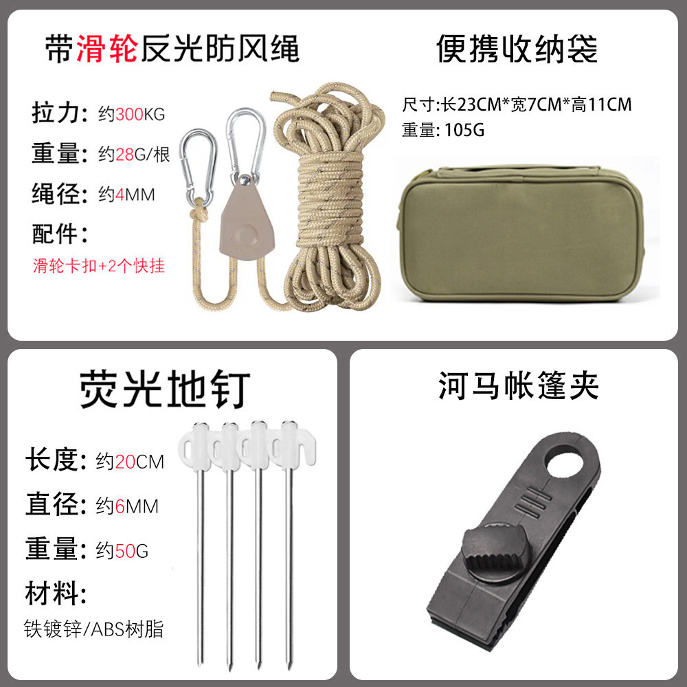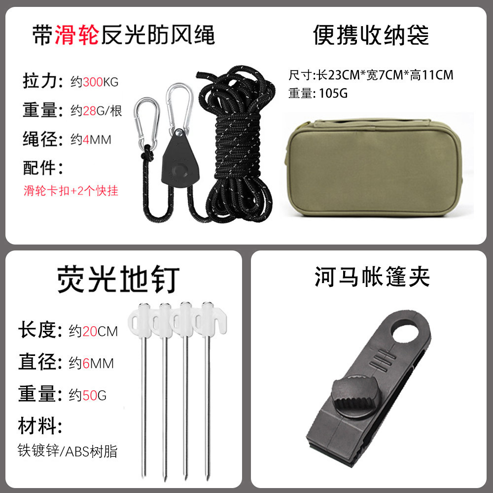 • 형광 롤러 스케이트 반사 방풍 로프 4개 + 접지 못 4개 + 클립 4개 + 망치 + 카키색 보관 가방