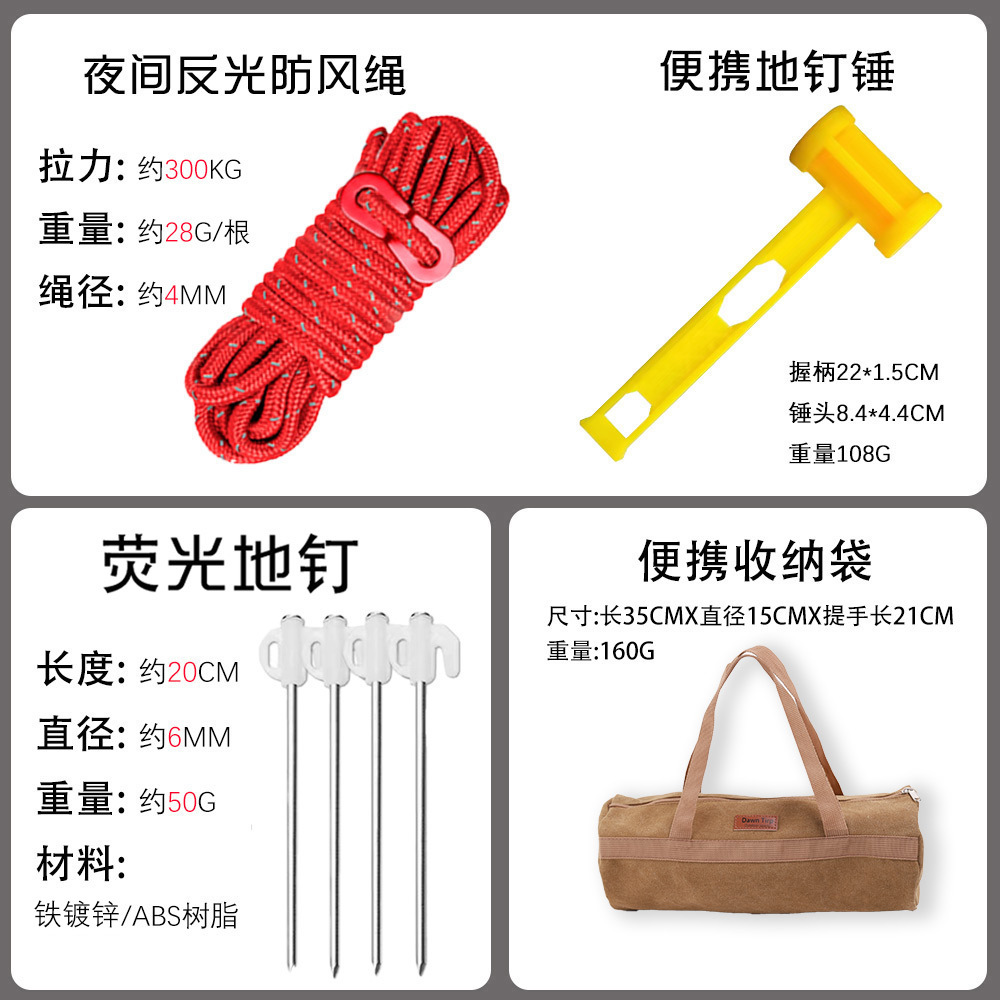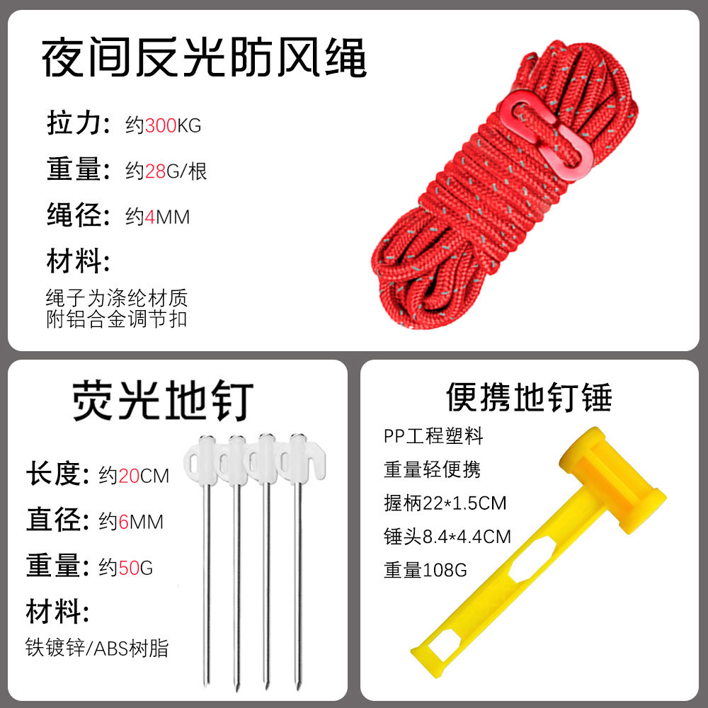 • 빨간색 롤러 스케이트 반사 방풍 로프 4개 + 접지 못 4개 + 망치 + 카키색 보관 가방